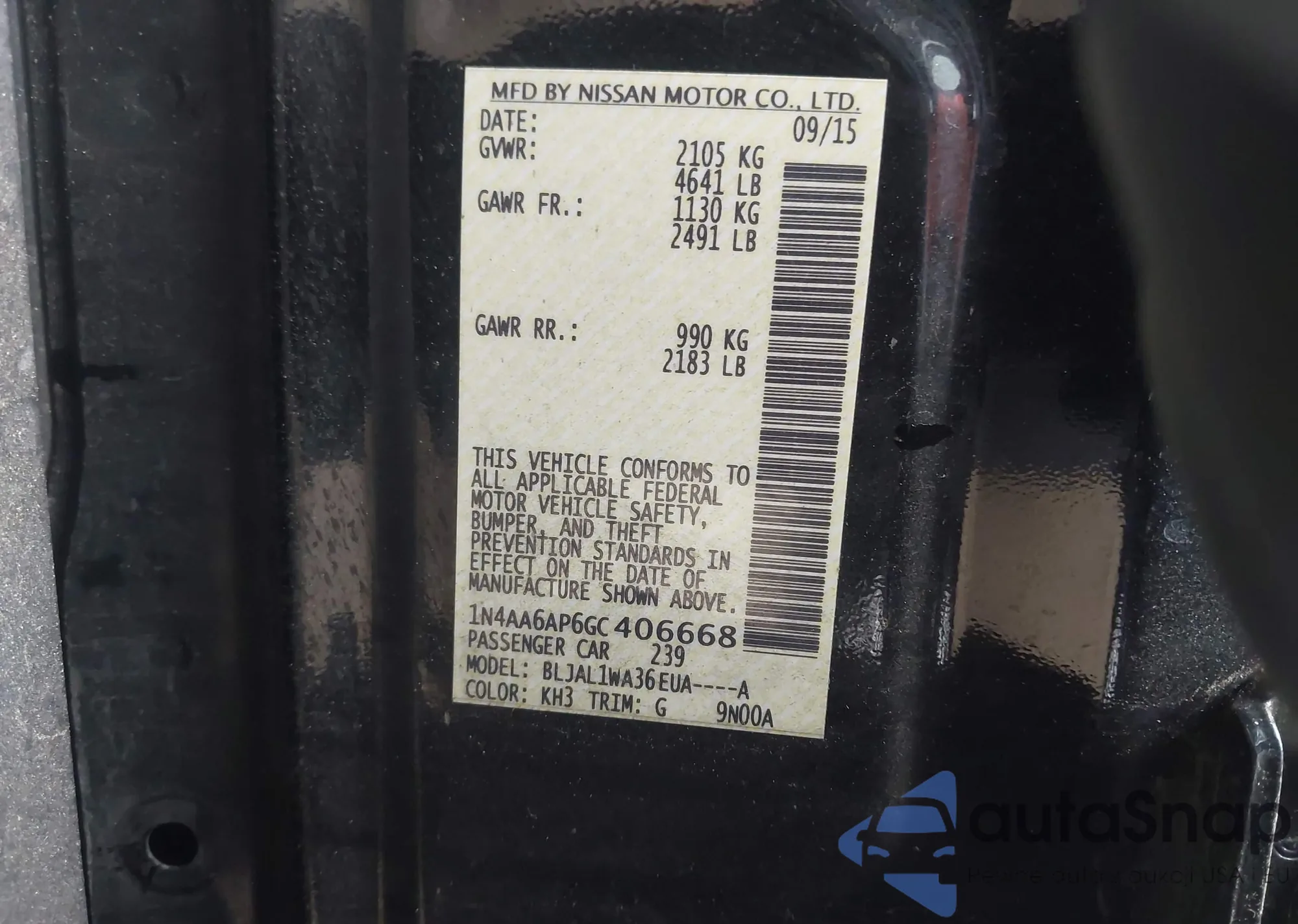 • VIN 1N4AA6AP6GC406668