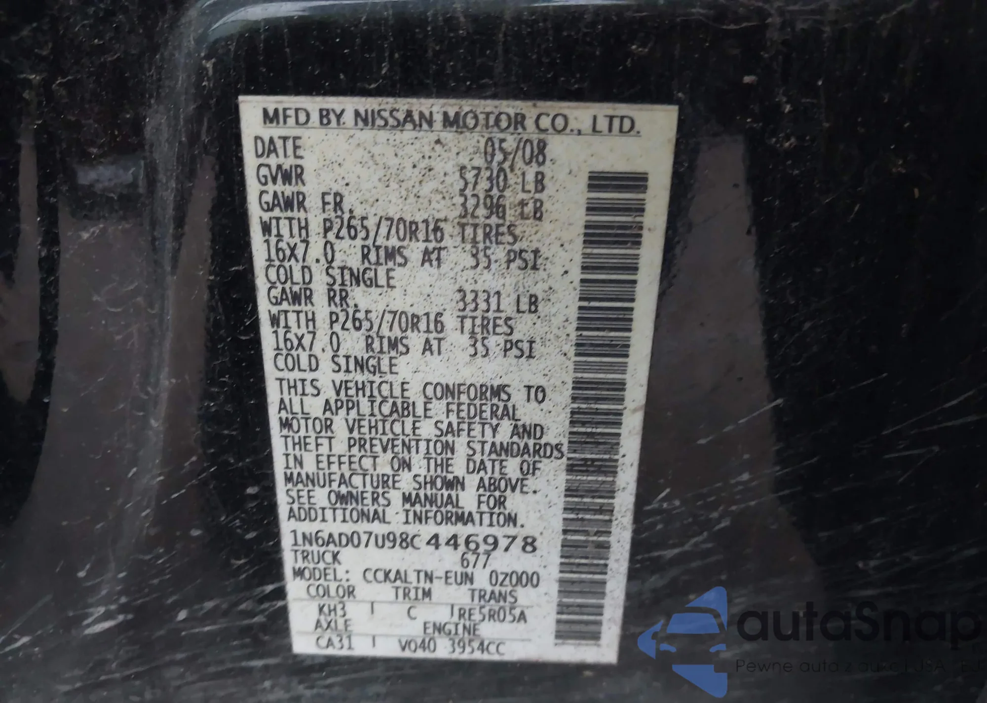 • VIN 1N6AD07U98C446978