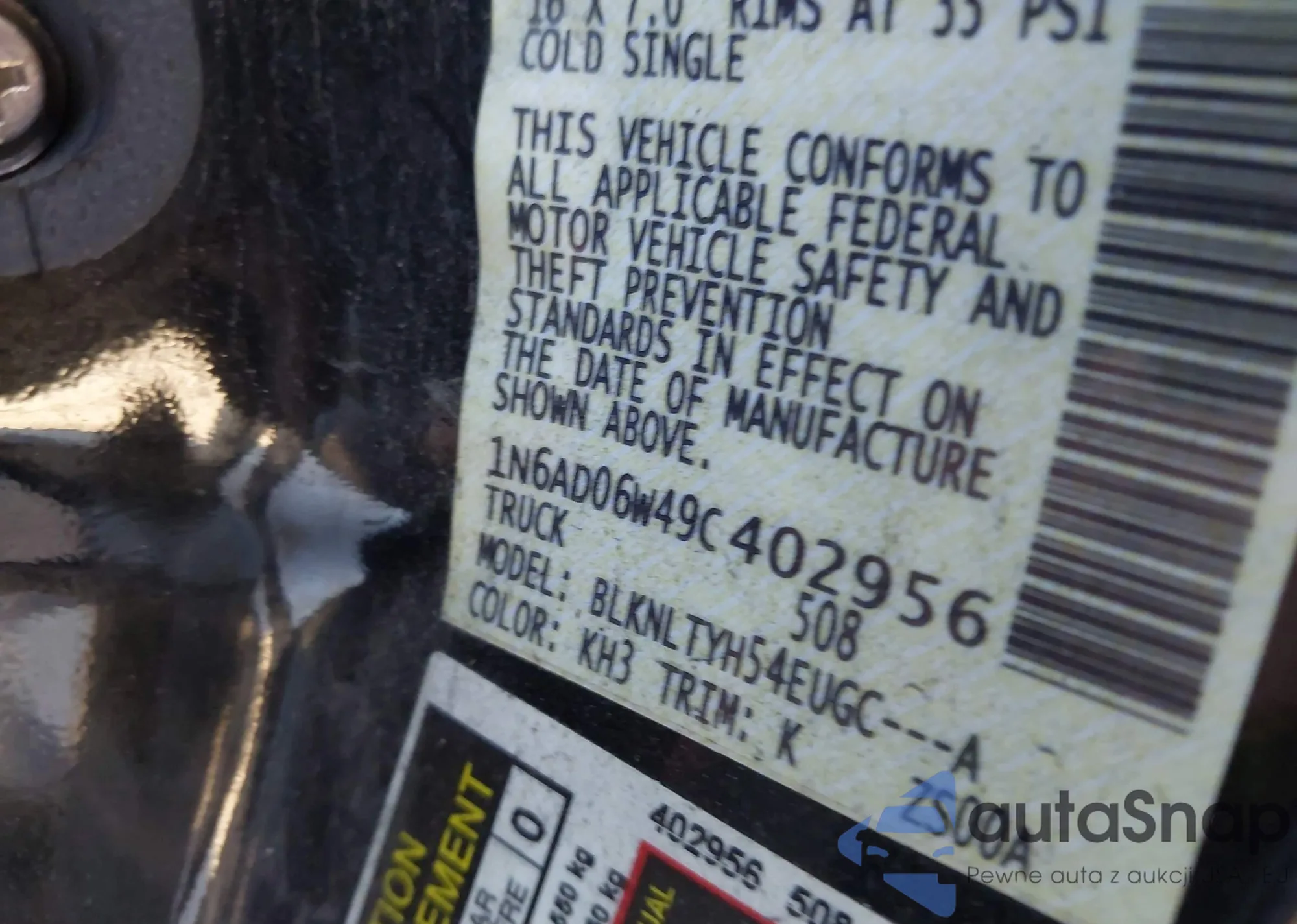 • VIN 1N6AD06W49C402956