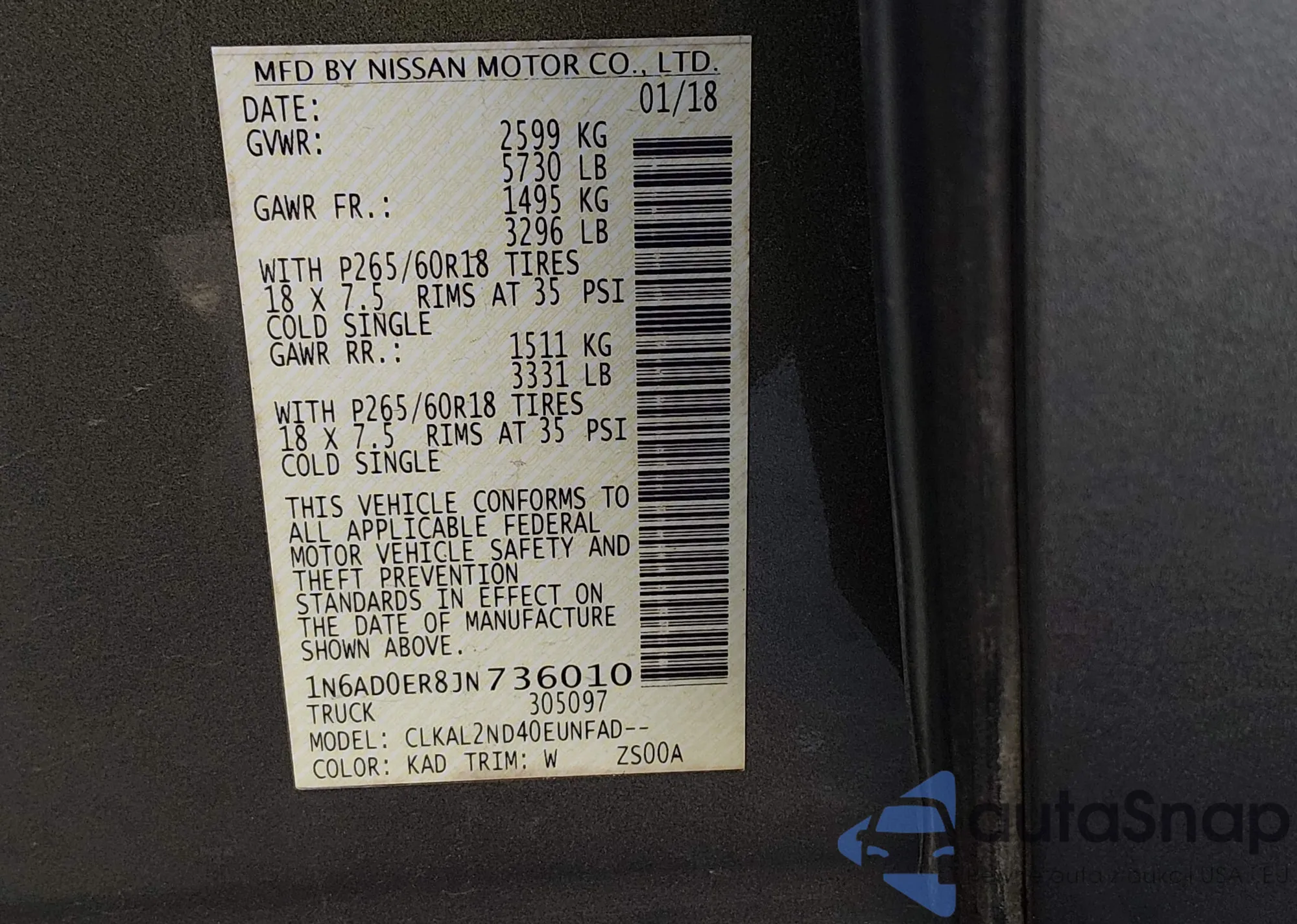 • VIN 1N6AD0ER8JN736010