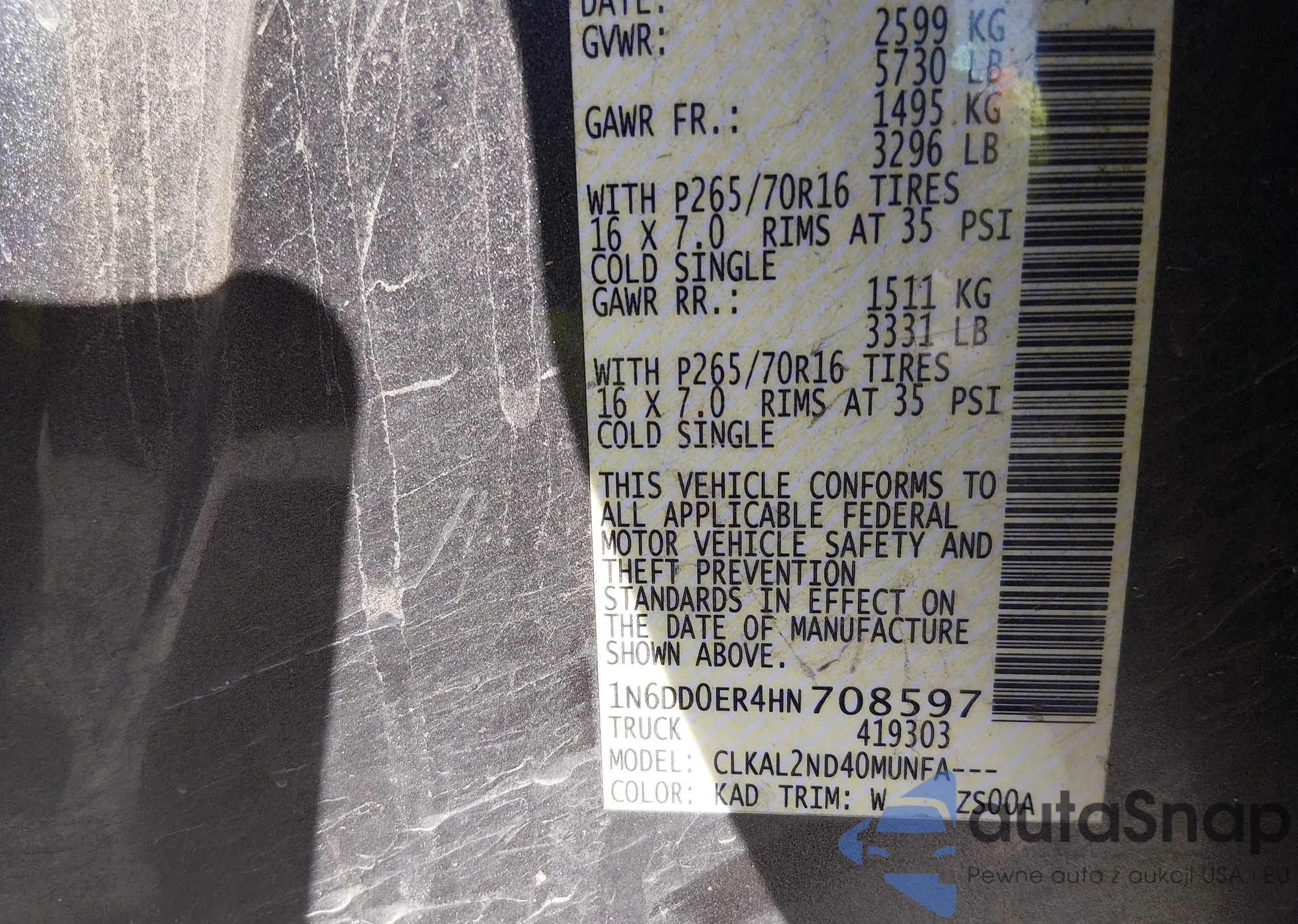 • VIN 1N6DD0ER4HN708597