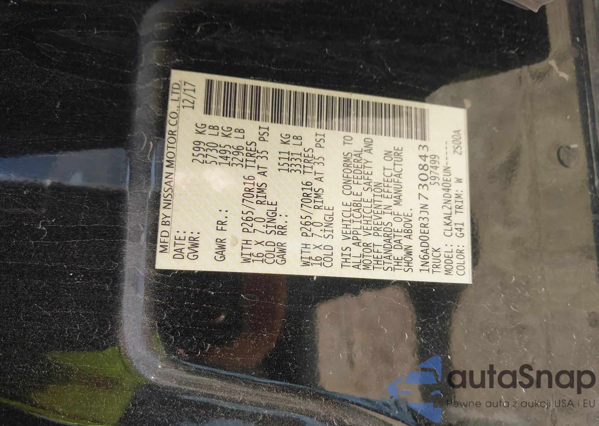 • VIN 1N6DD0EV3JN753906