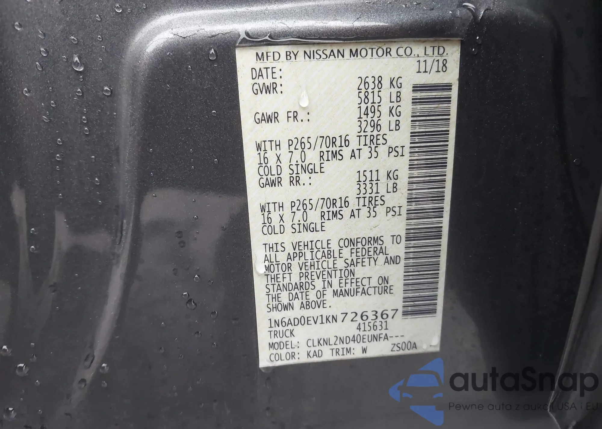 • VIN 1N6AD0EV1KN726367