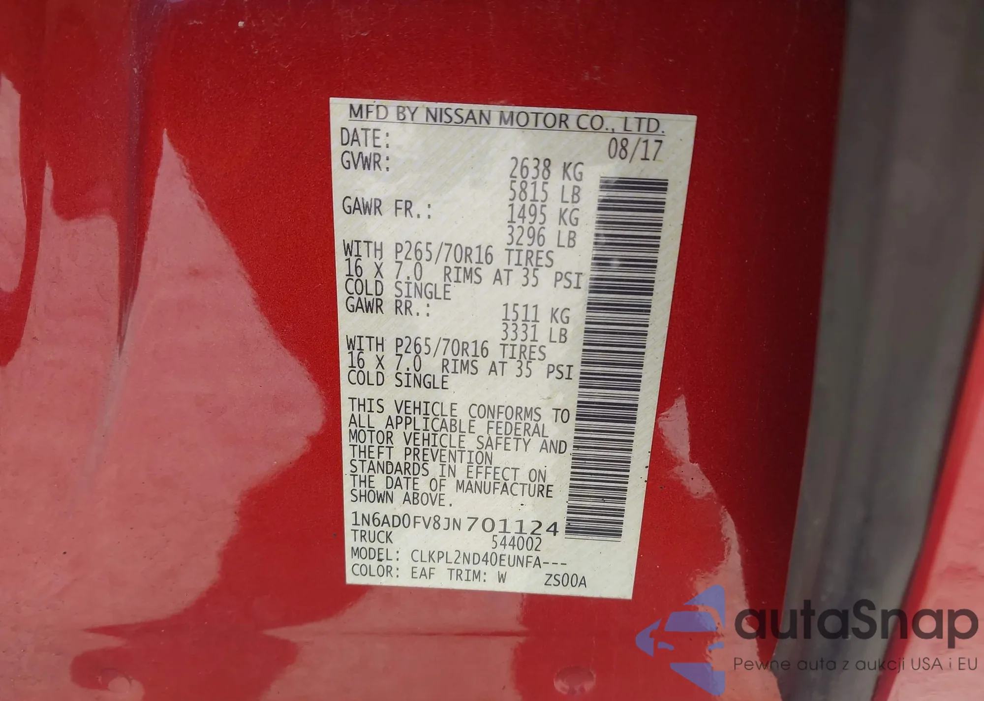 • VIN 1N6AD0FV8JN701124