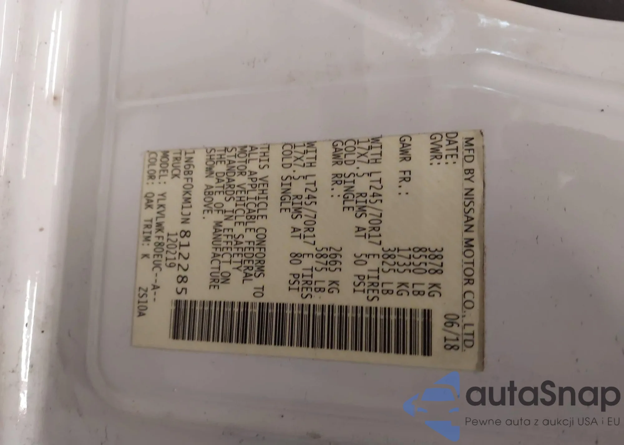 • VIN 1N6AF0LY1JN808881