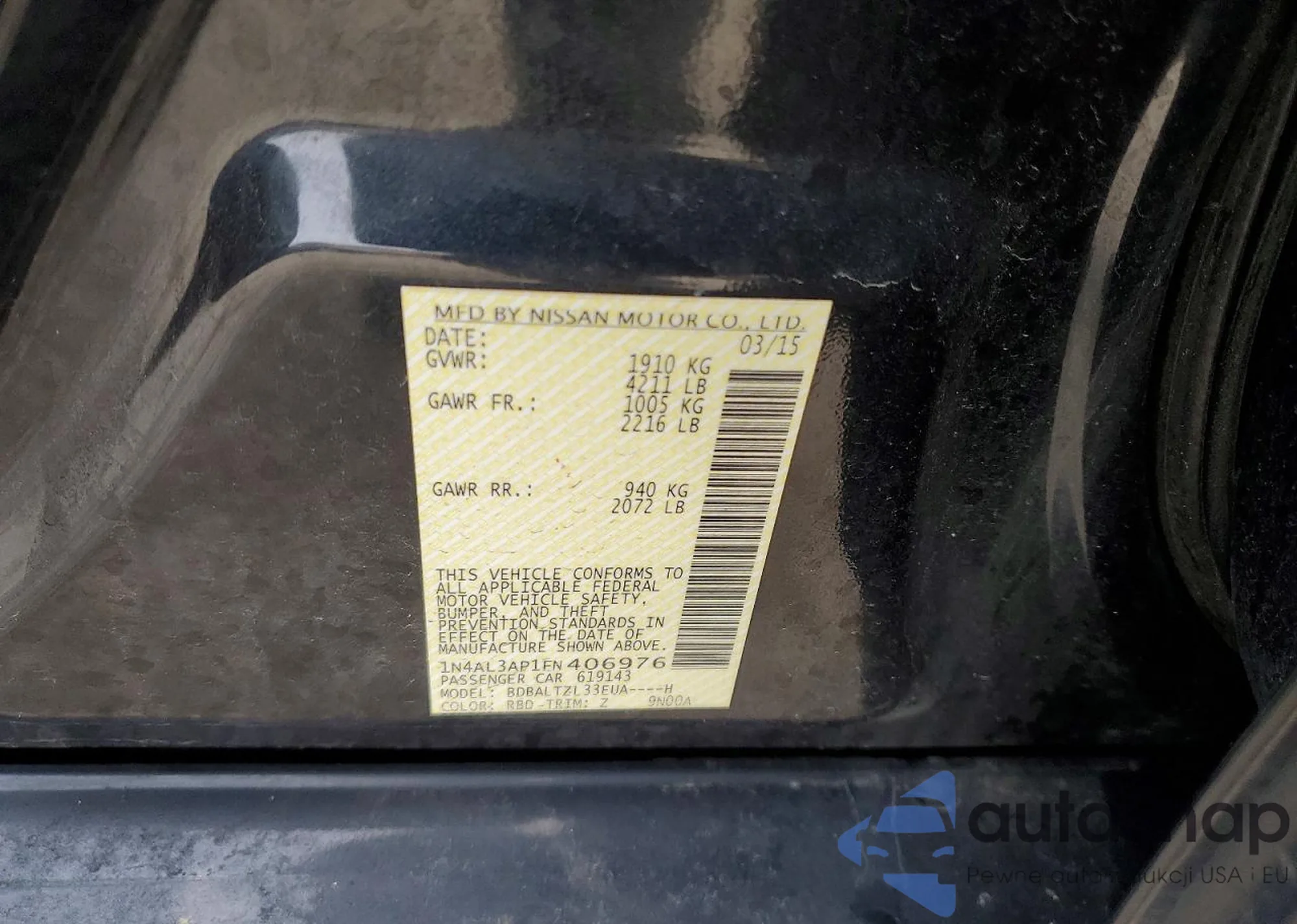LOT: 99103015 VIN: 1N4AL3AP1FN406976