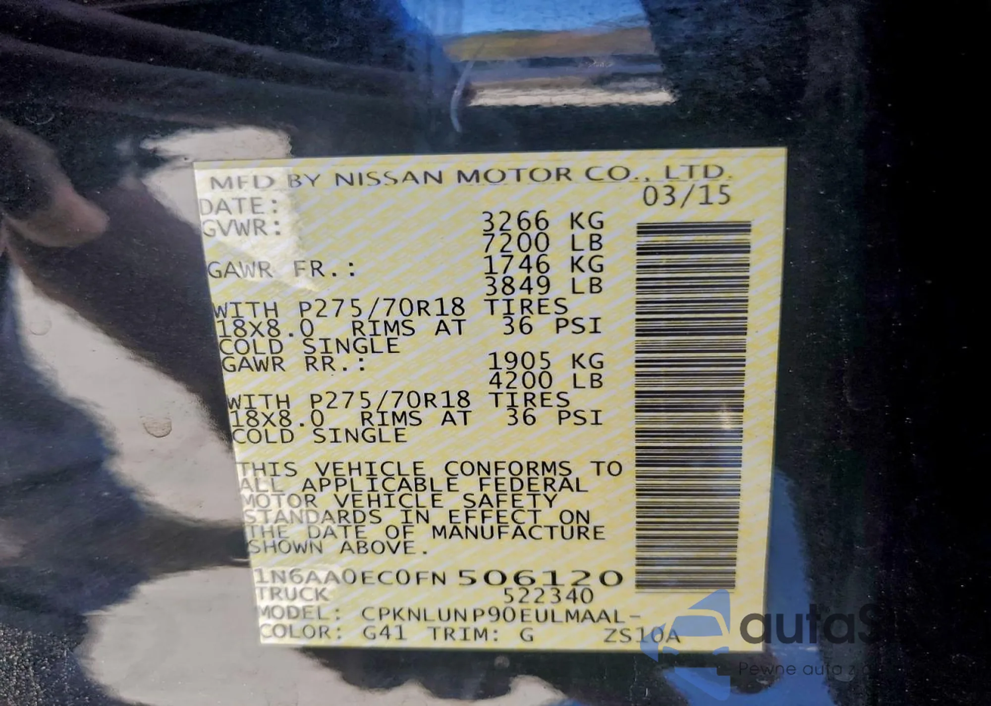 • VIN 1N6AA0EC0FN506120