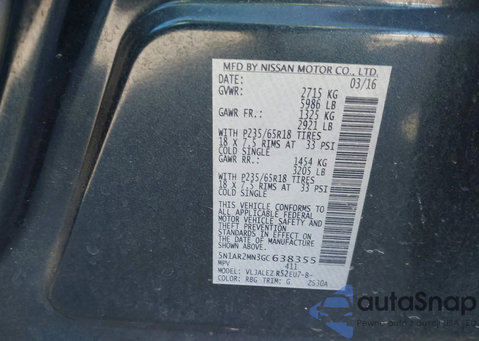 • VIN 5N1AR2MN3GC638355