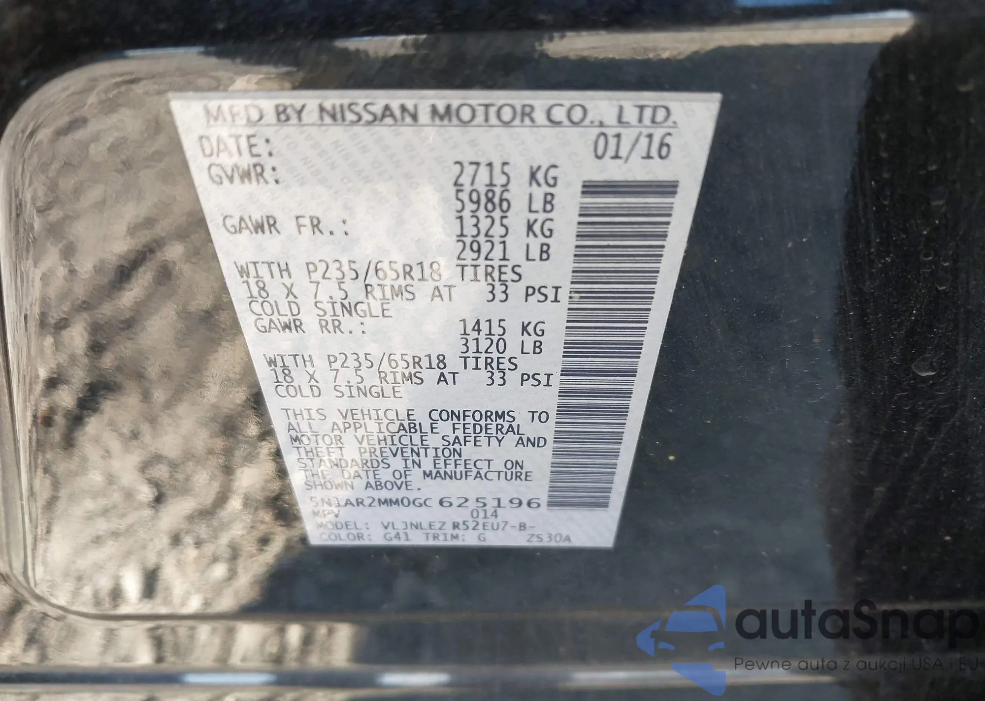 • VIN 5N1AR2MM0GC625196