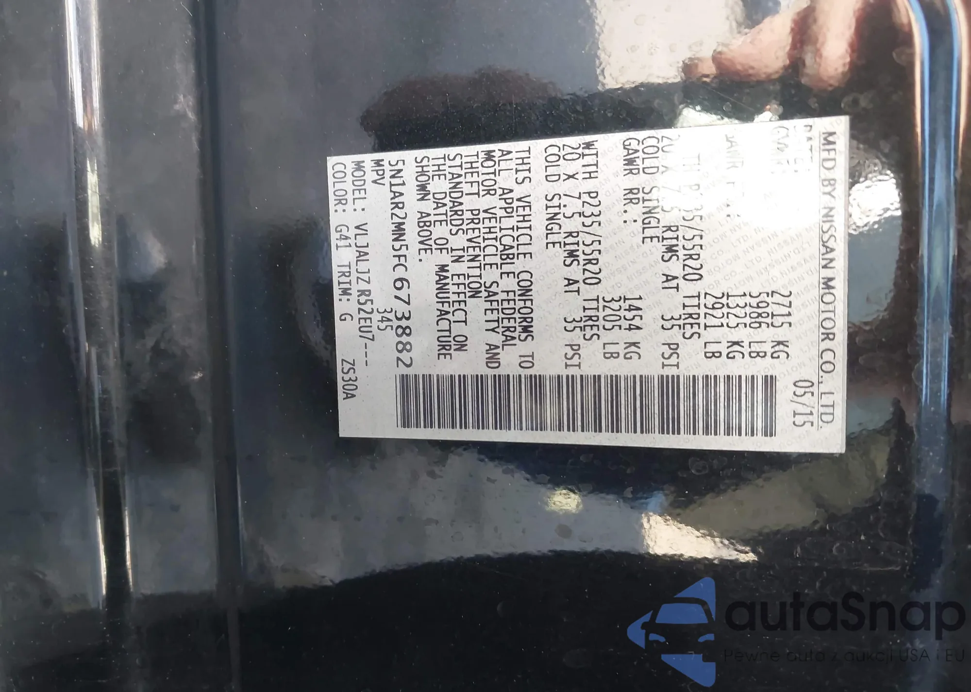 LOT: 43819361 VIN: 5N1AR2MM3FC677226