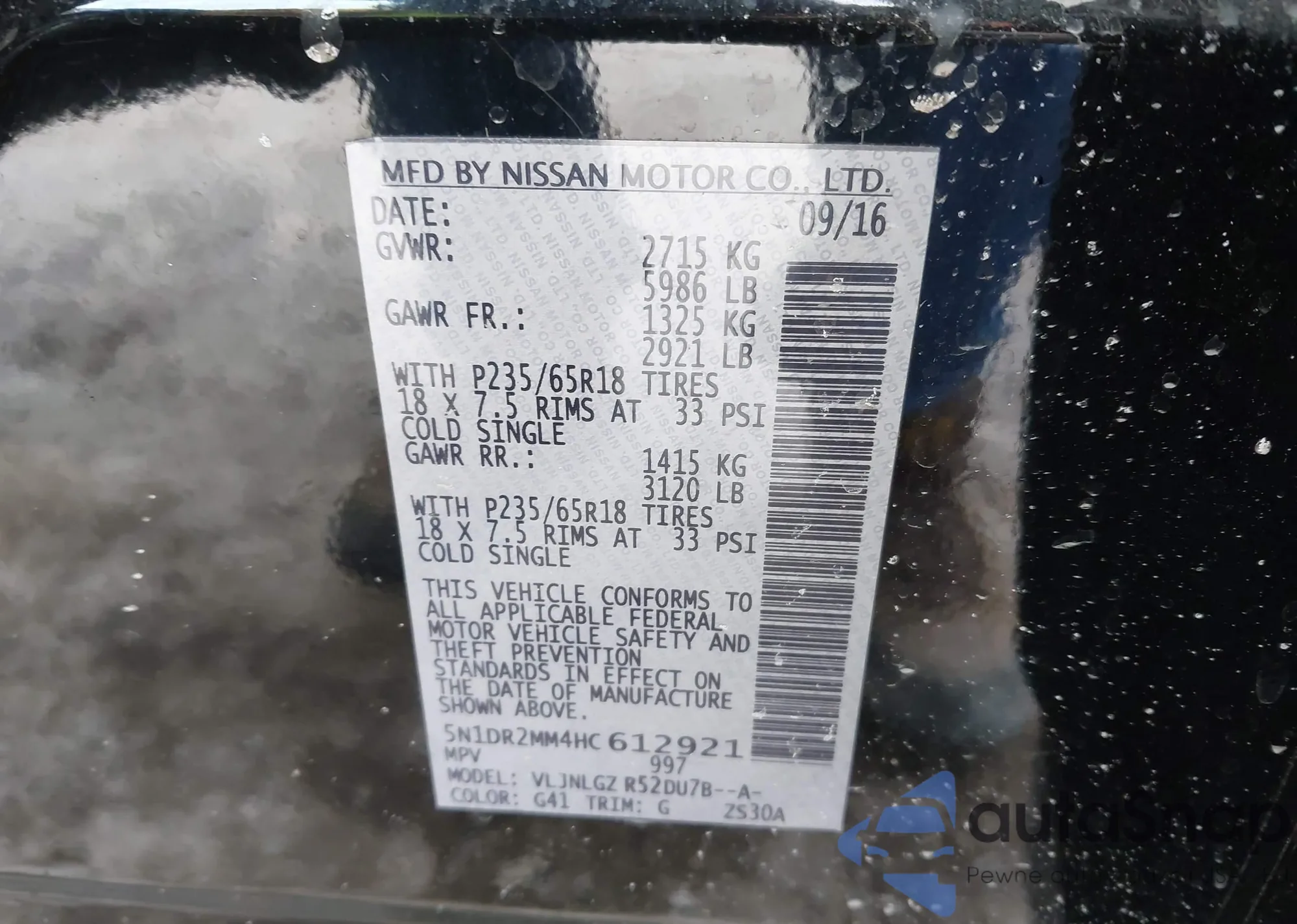 LOT: 43995079 VIN: 5N1DR2MN9HC635801