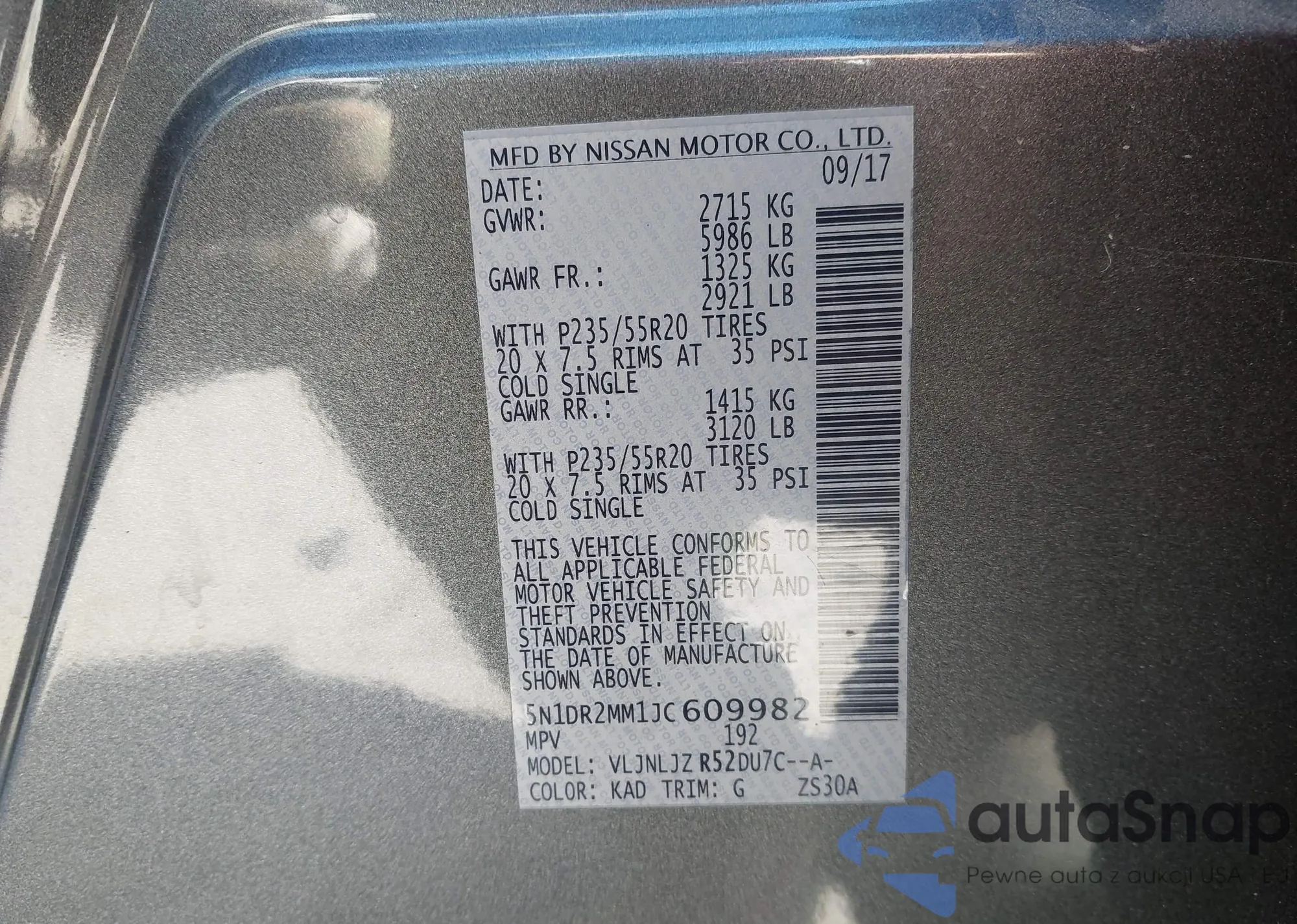 • VIN 5N1DR2MM9JC627548