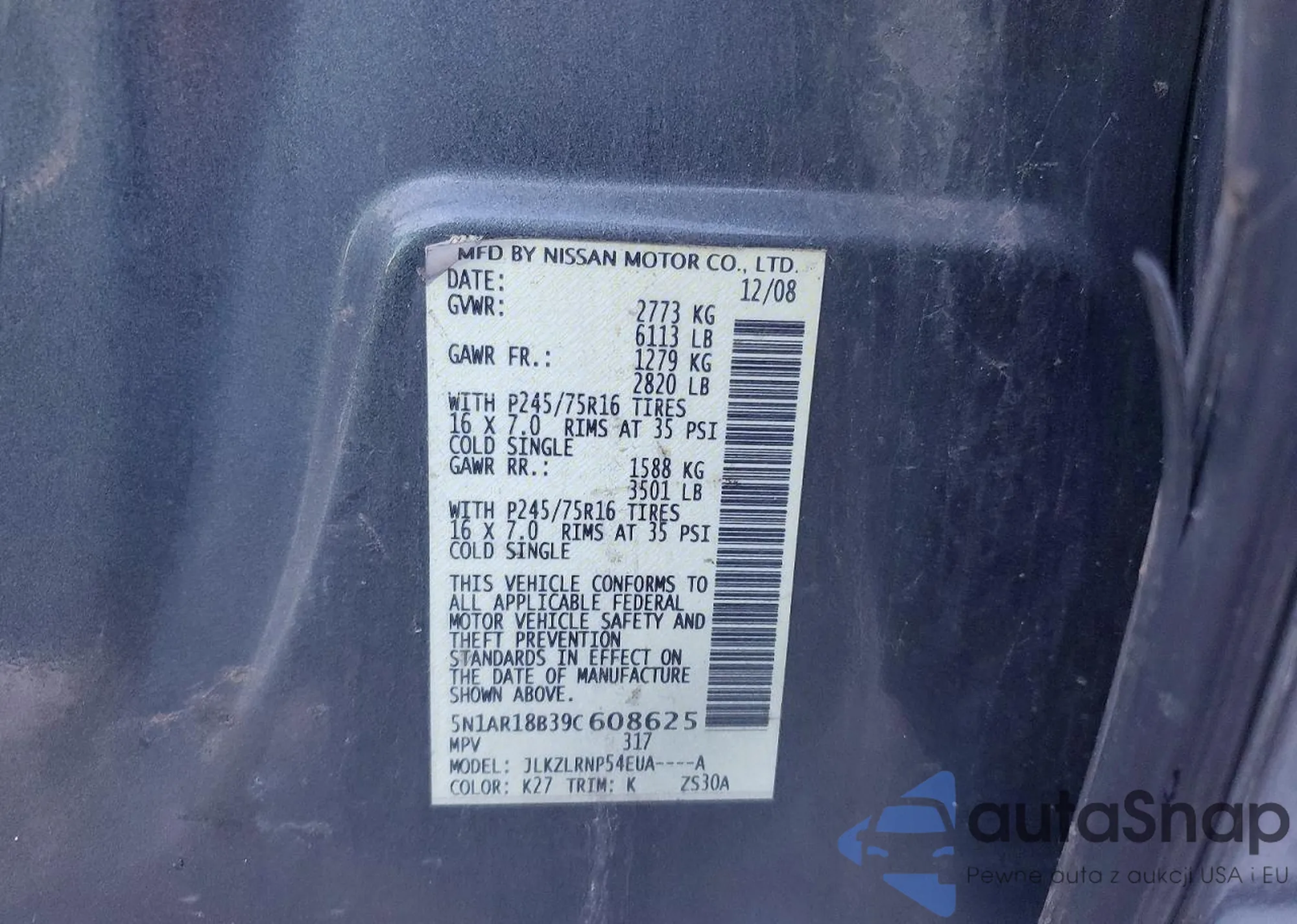 LOT: 74204775 VIN: 5N1AR18B39C608625