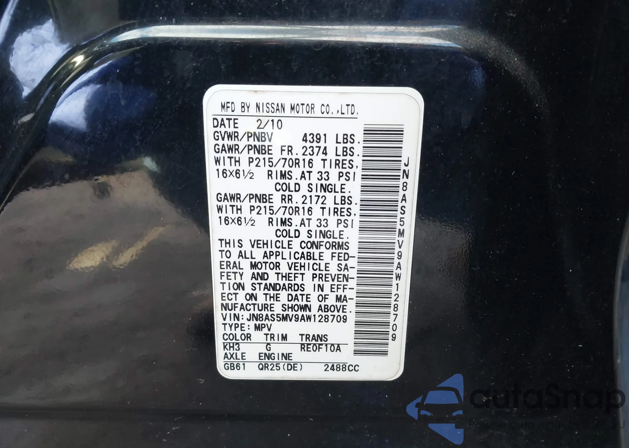 • VIN JN8AS5MV9AW128709