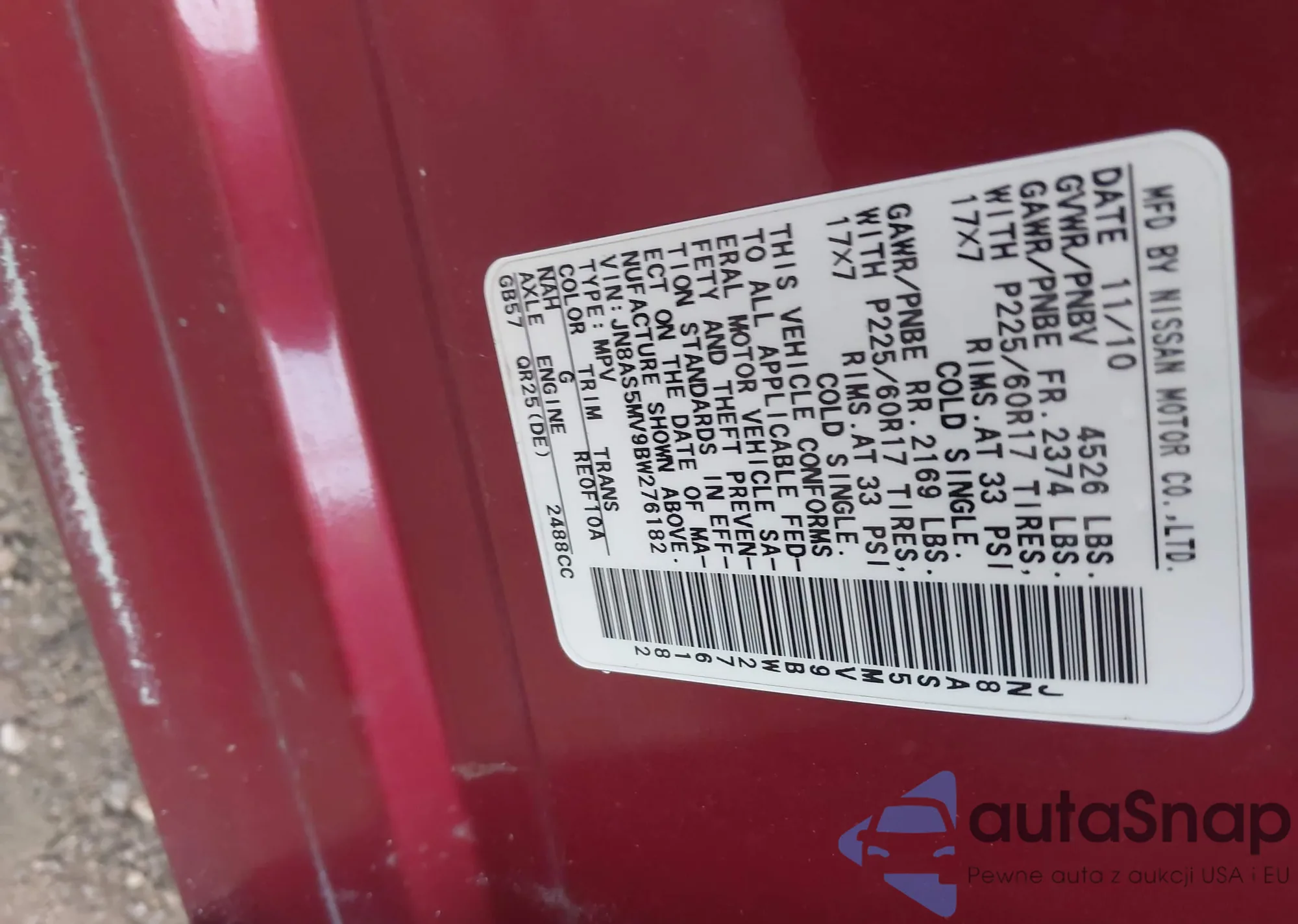 • VIN JN8AS5MV9BW276182