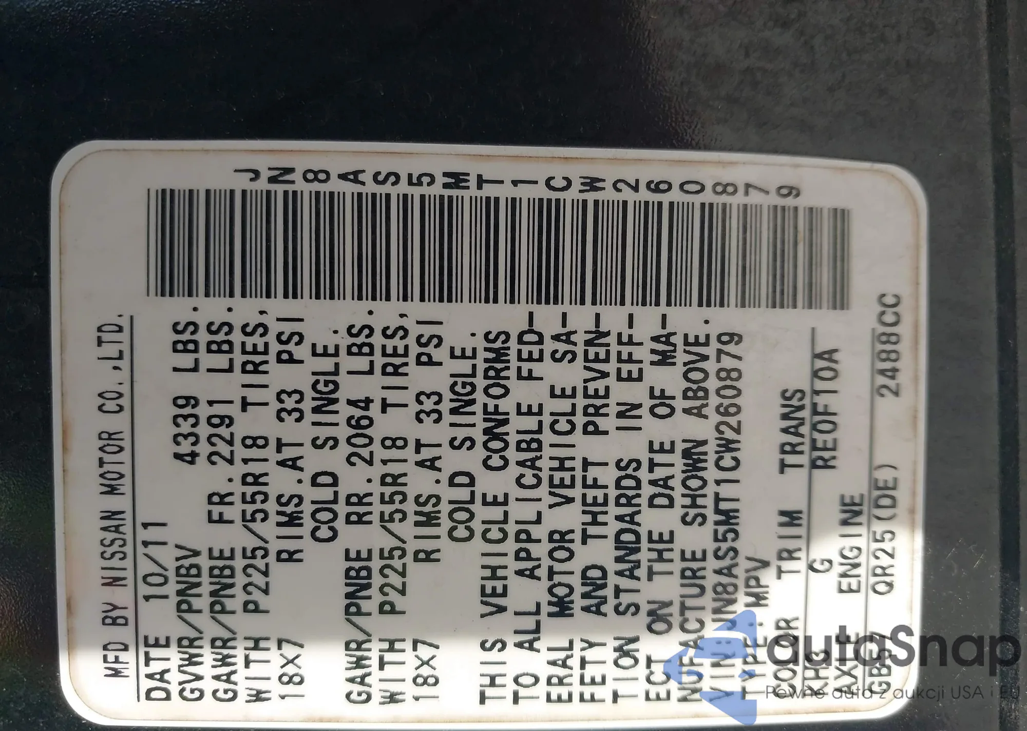 • VIN JN8AS5MT5CW260111