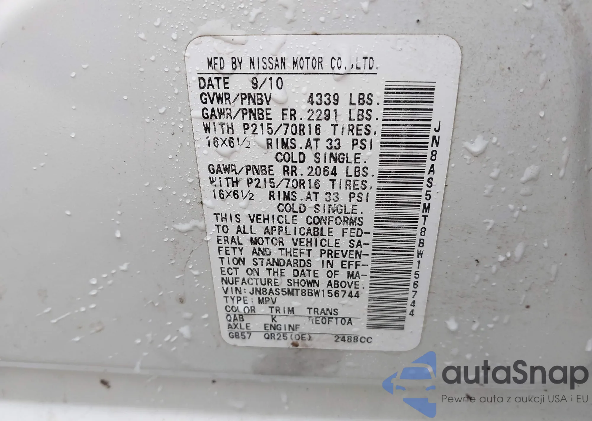 • VIN JN8AS5MT8BW156744