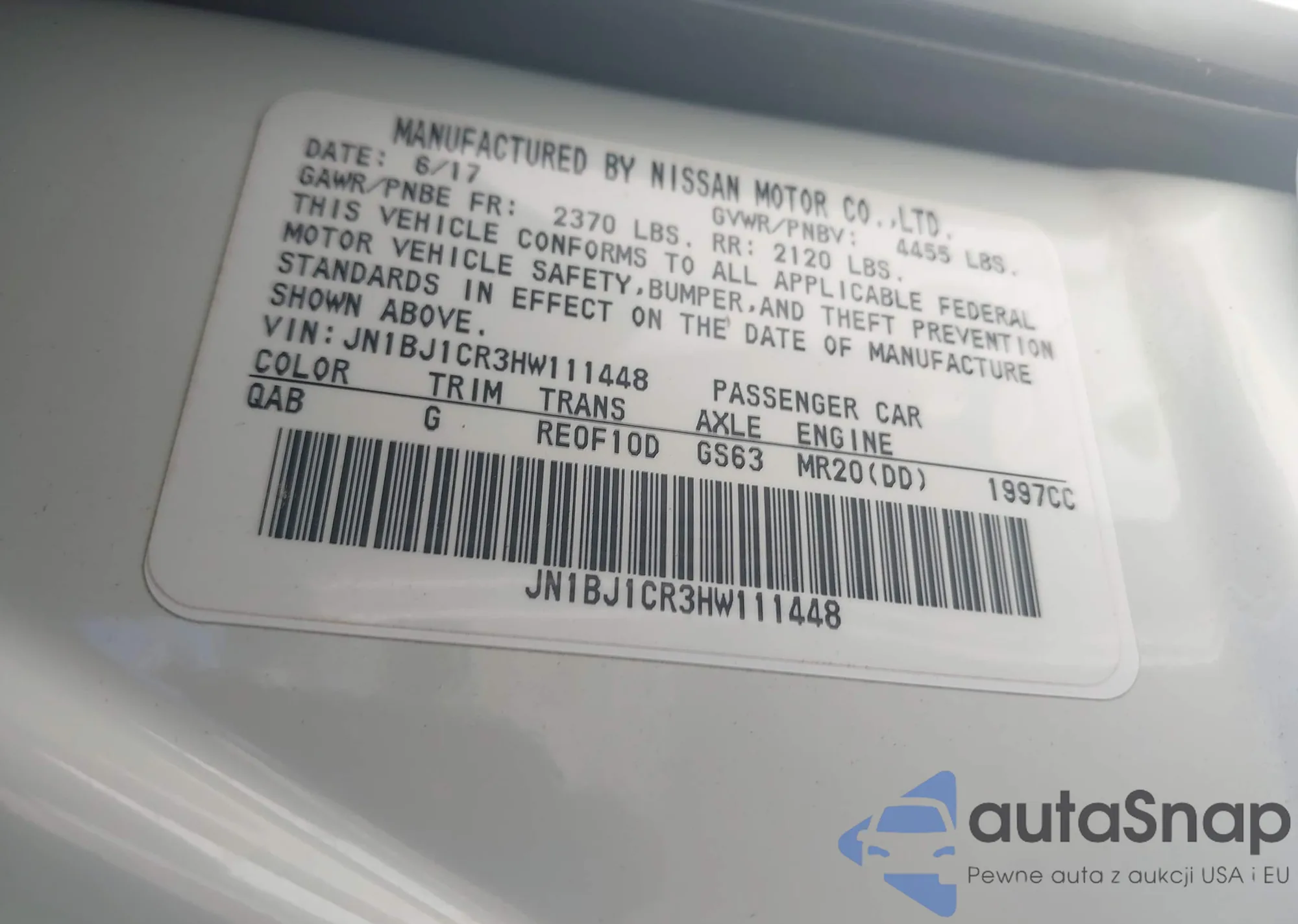 LOT: 42569238 VIN: JN1BJ1CR3HW111448