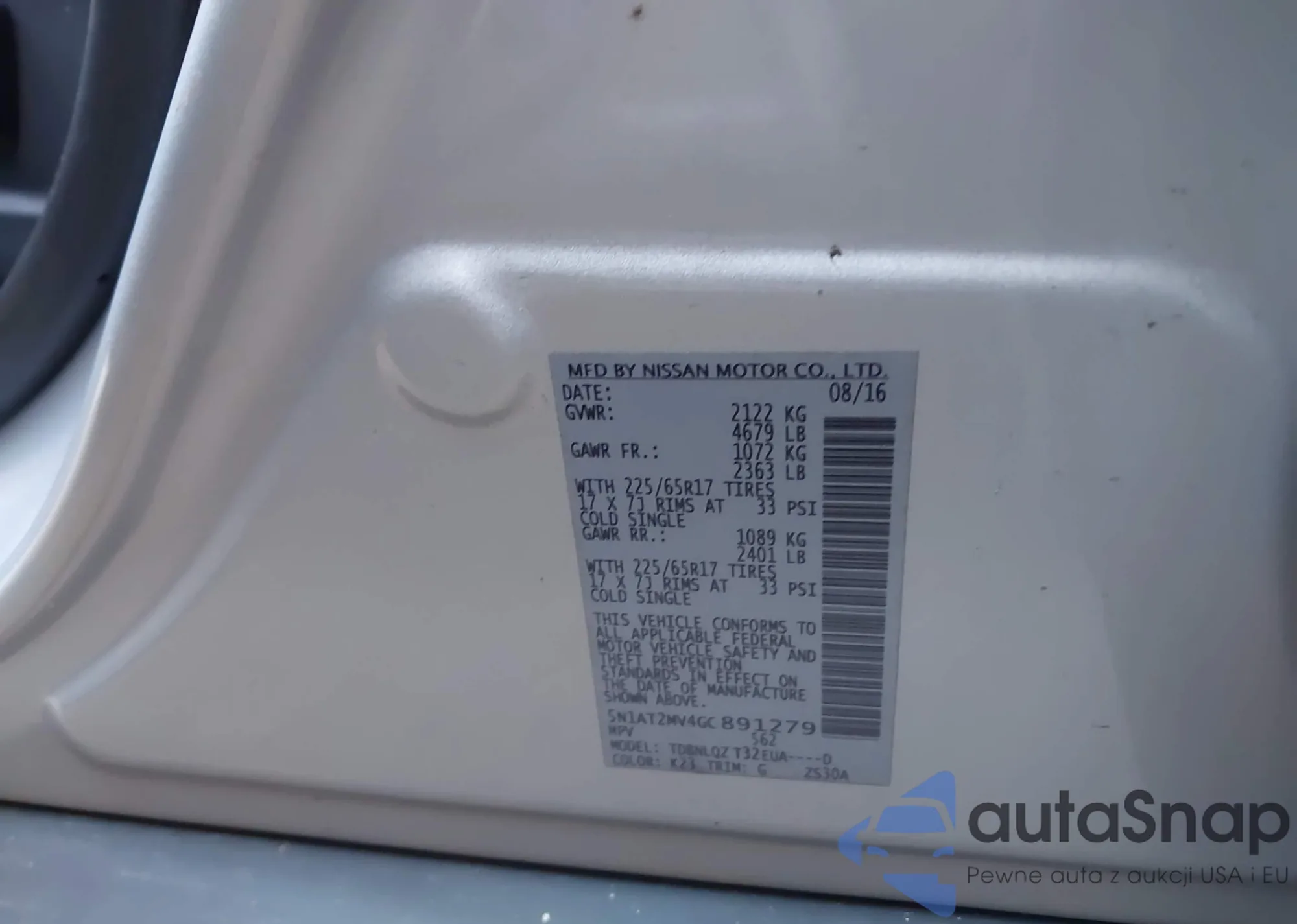 LOT: 43874836 VIN: 5N1AT2MT0GC922834