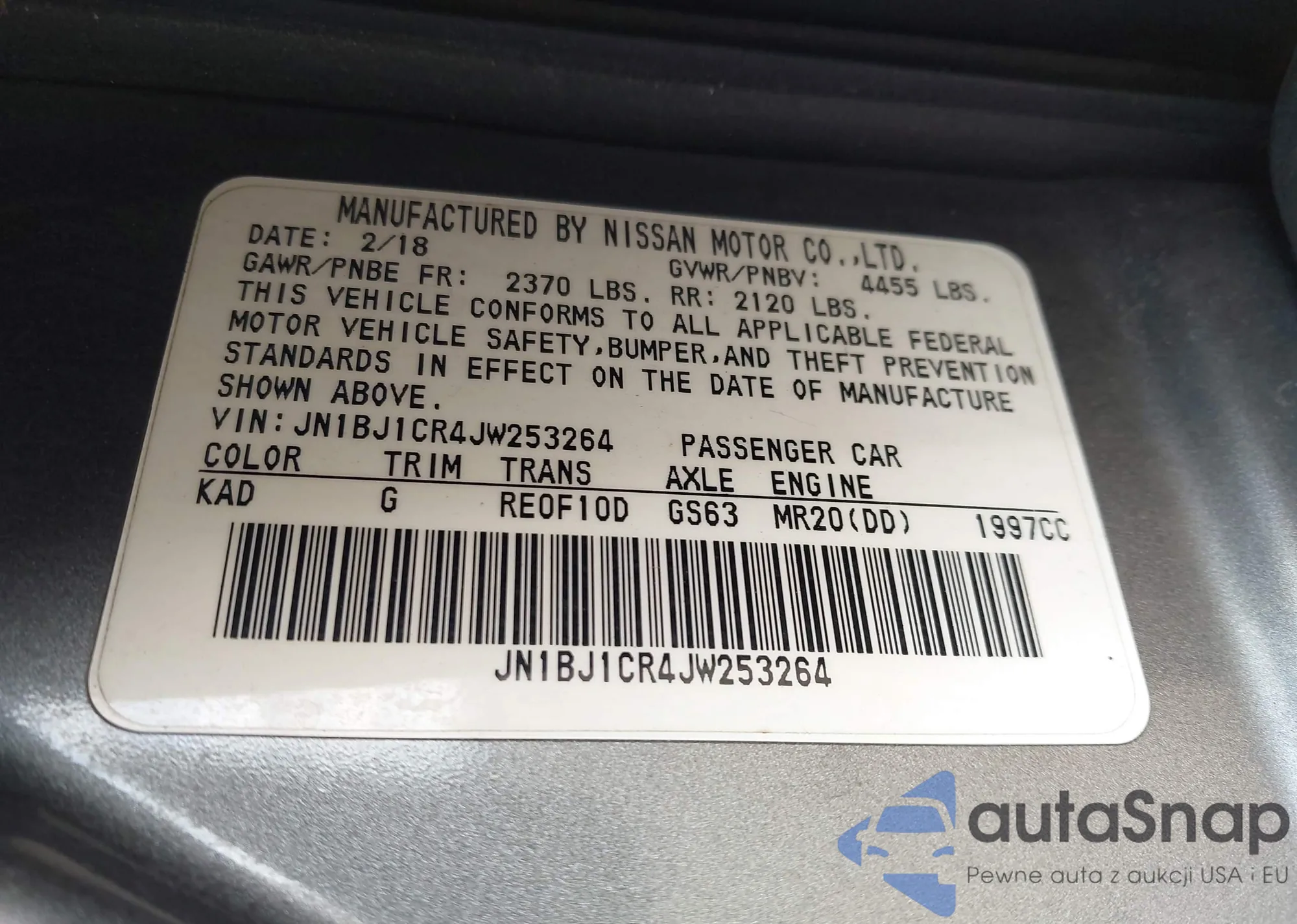 LOT: 44583659 VIN: JN1BJ1CR2JW210803