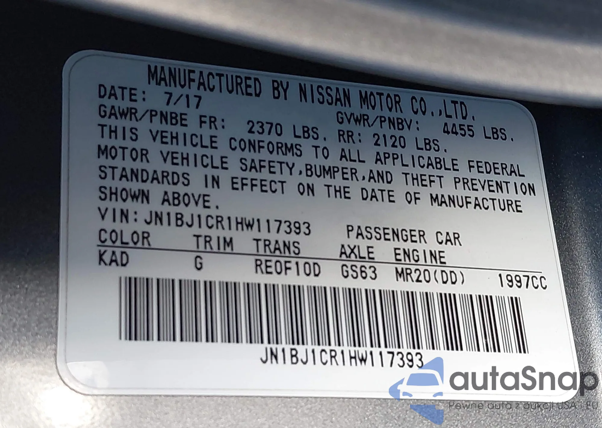 LOT: 44149784 VIN: JN1BJ1CR1HW117393