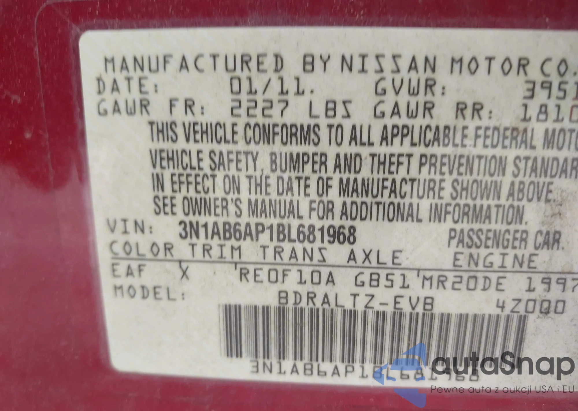 • VIN 3N1AB6AP1BL681968