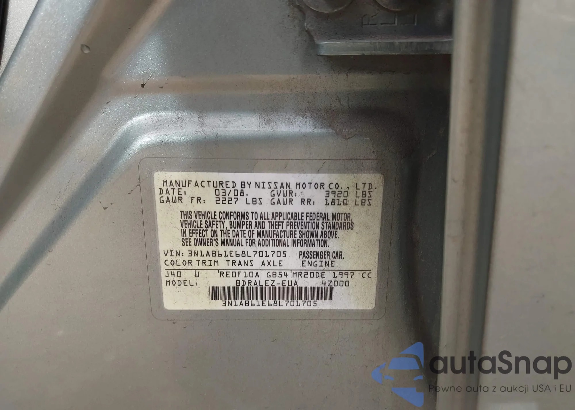 • VIN 3N1AB61E68L701705
