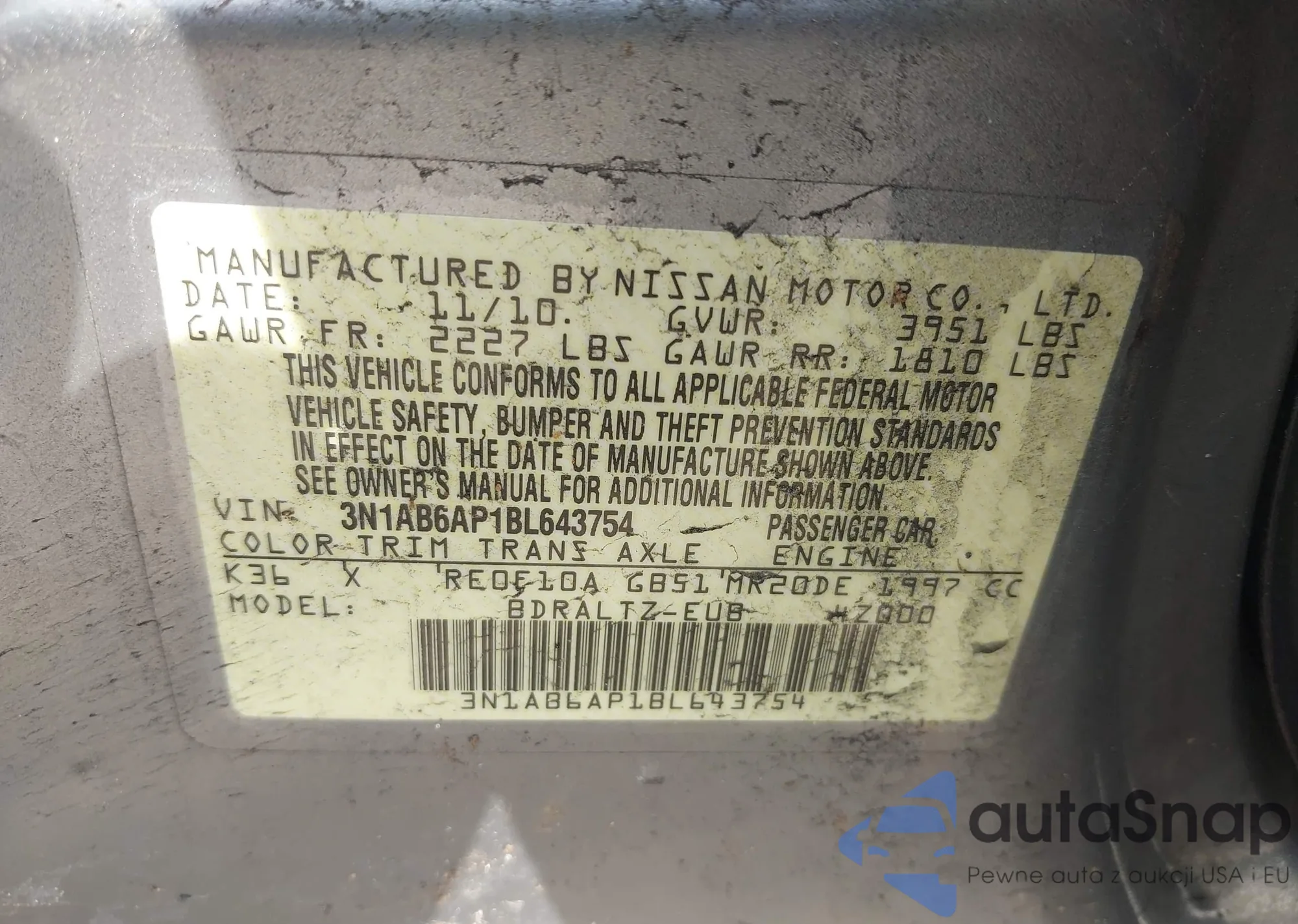 • VIN 3N1AB6AP1BL643754