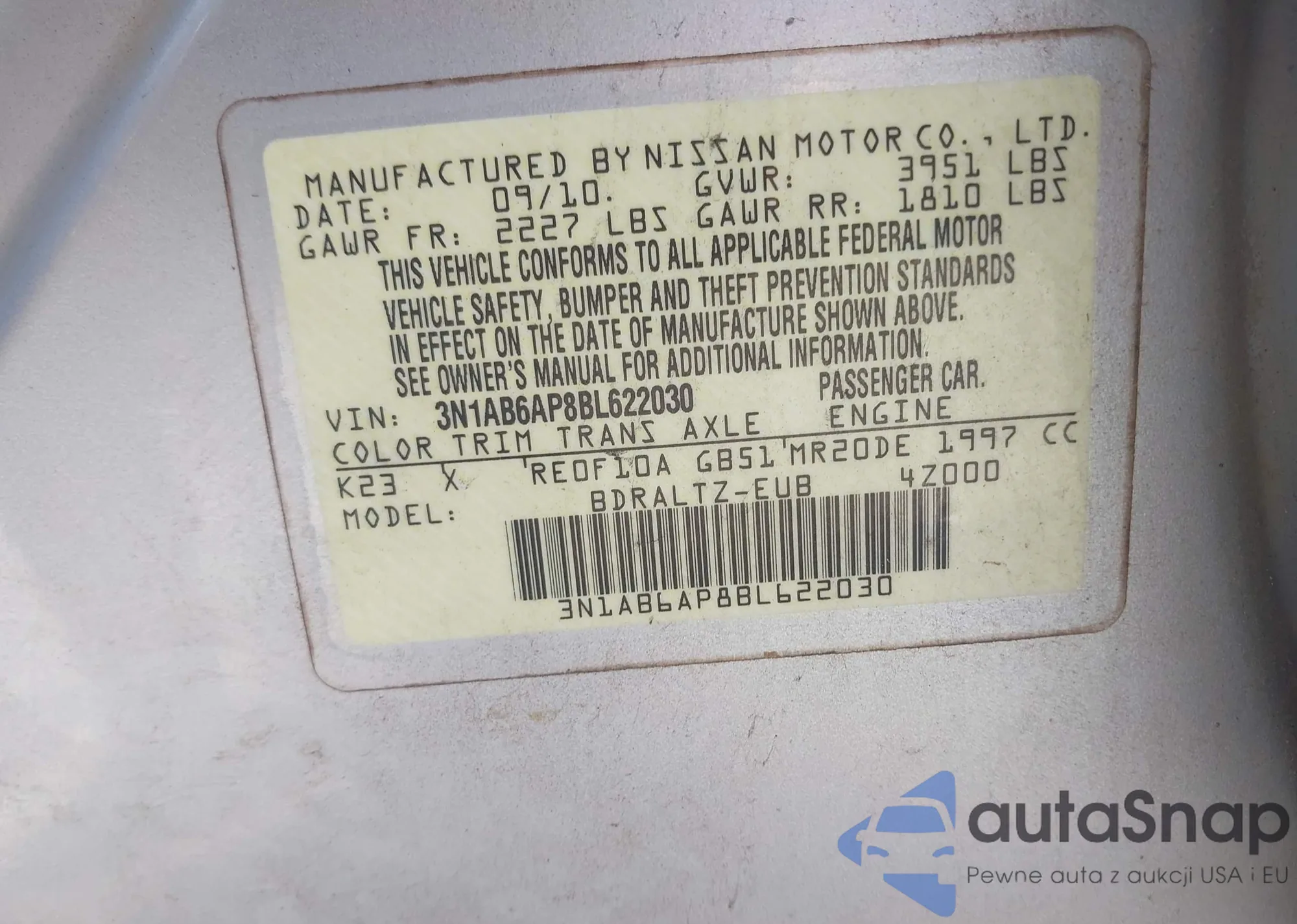 • VIN 3N1AB6AP8BL622030