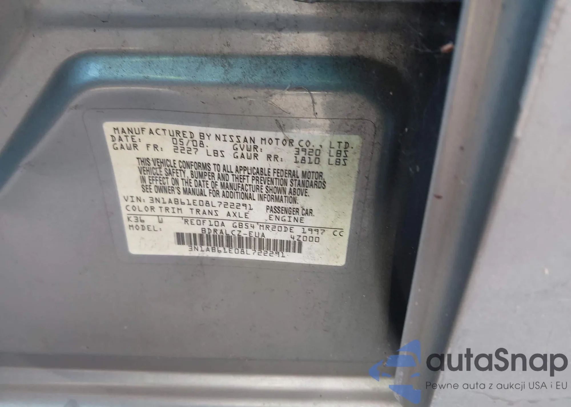 • VIN 3N1AB61E08L722291