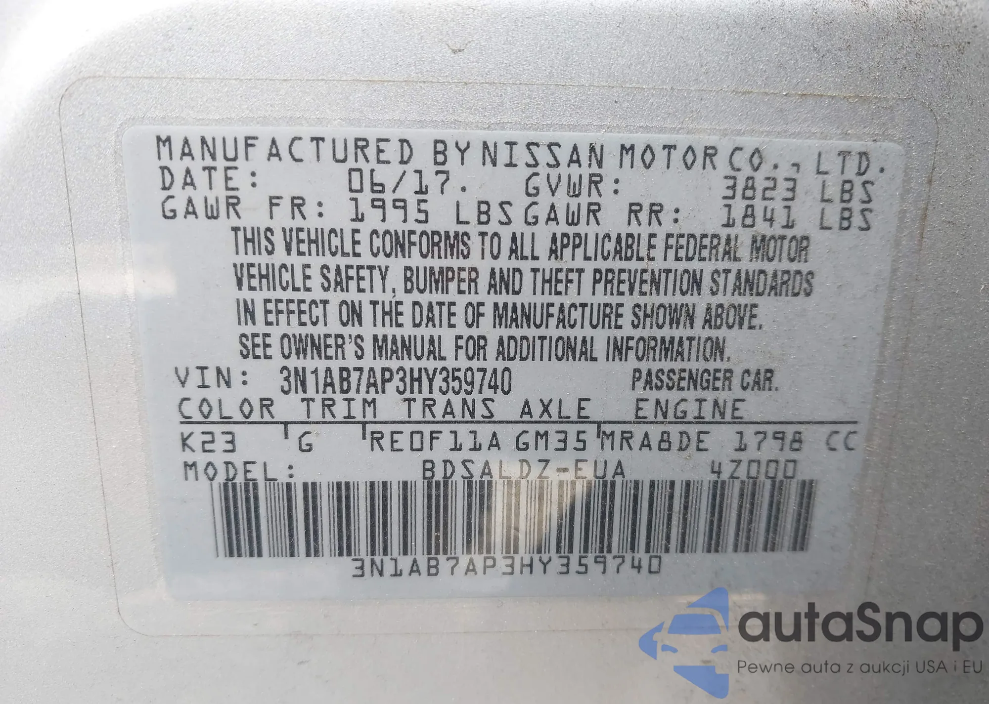• VIN 3N1AB7AP3HY359740