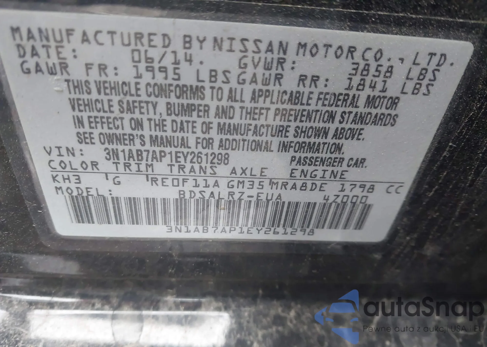 • VIN 3N1AB7AP1EY261298