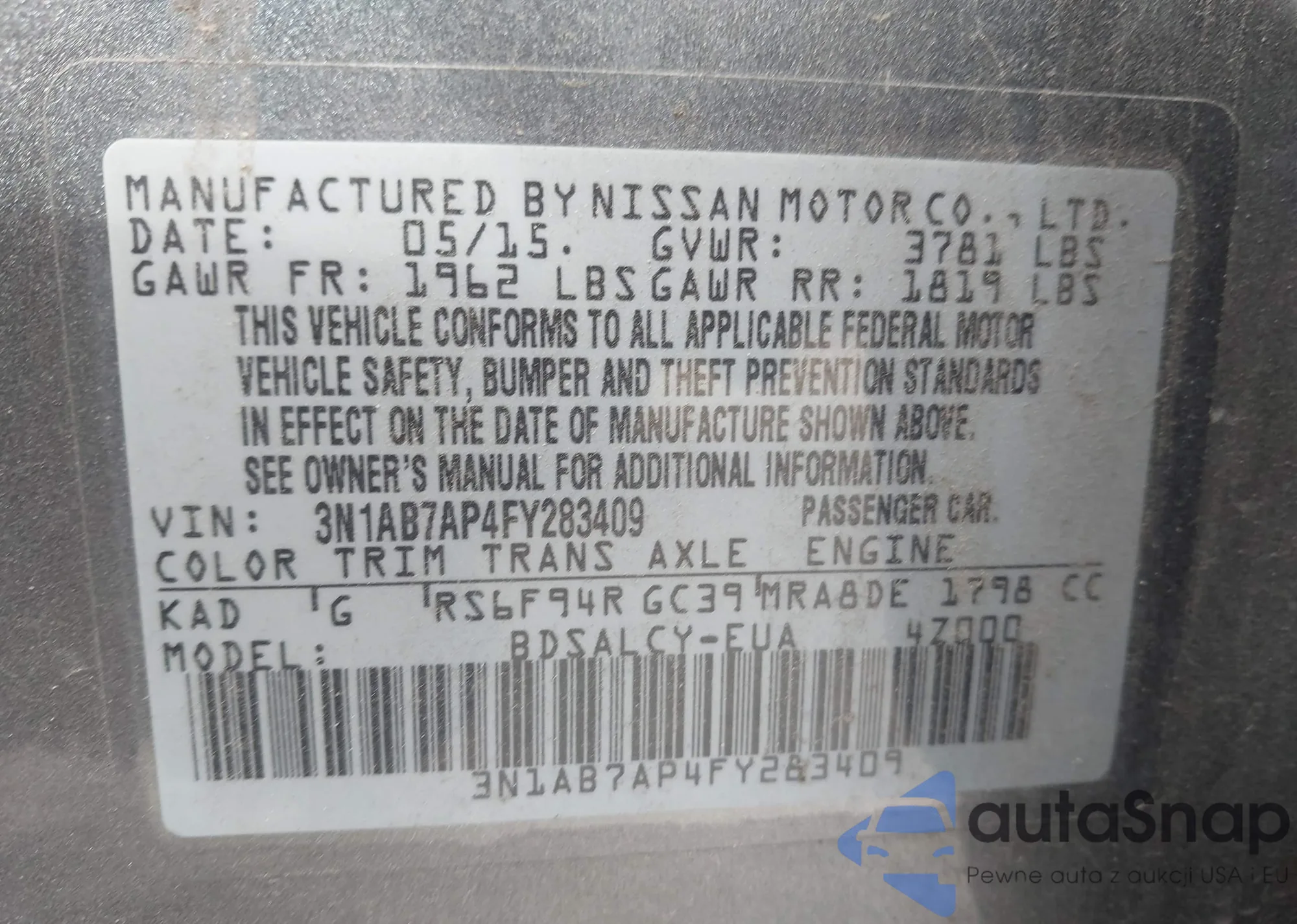 • VIN 3N1AB7AP4FY283409