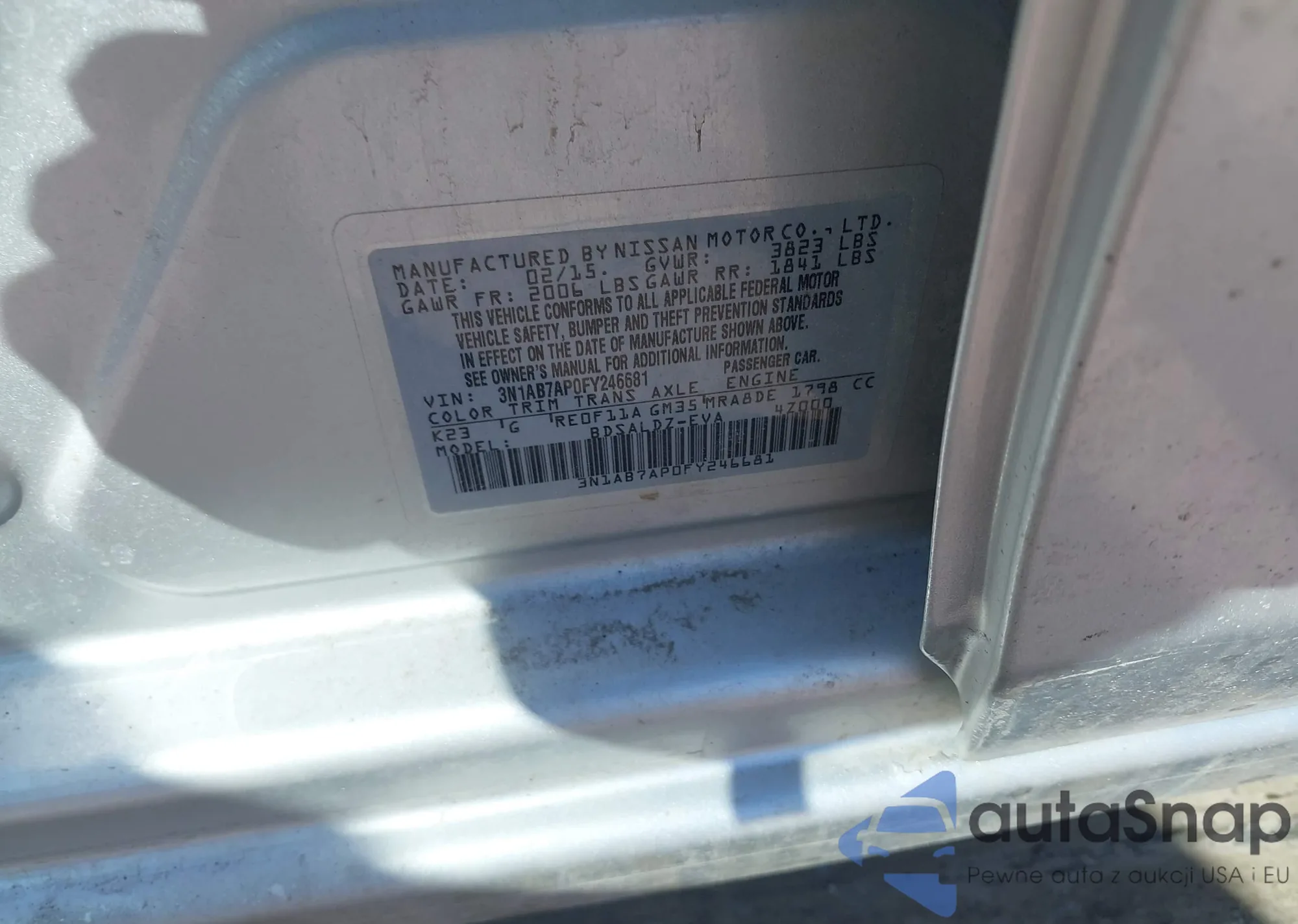 • VIN 3N1AB7AP0FY246681