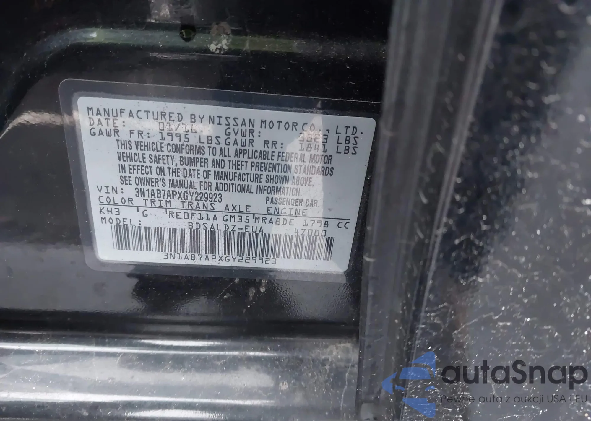 LOT: 44498716 VIN: 3N1AB7APXGY229923