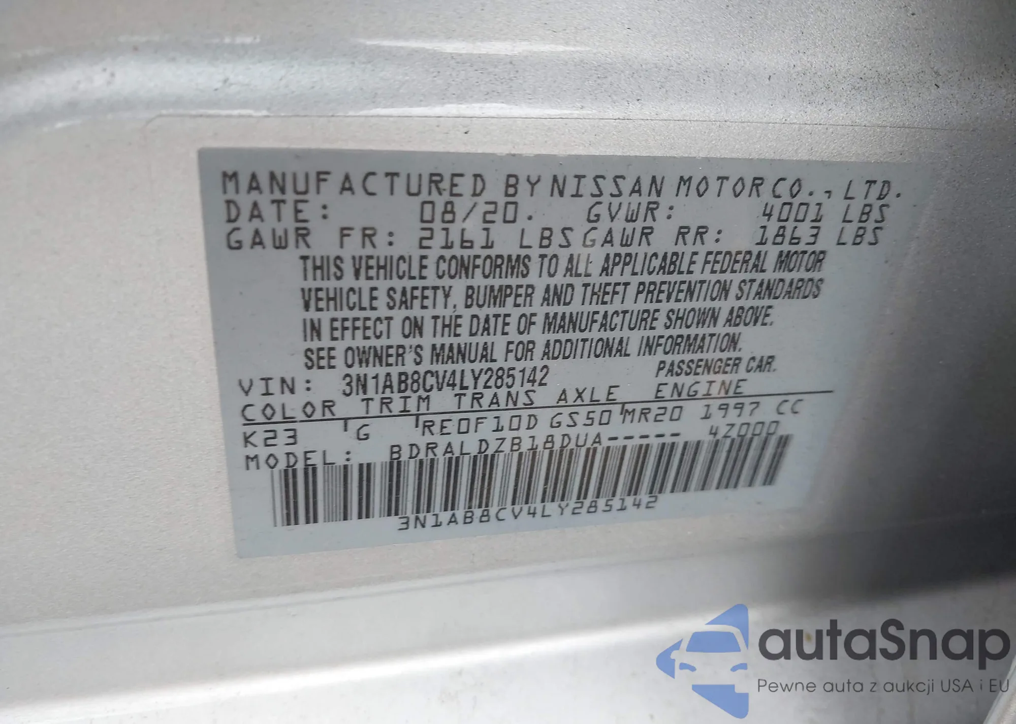 • VIN 3N1AB8CV0LY247102