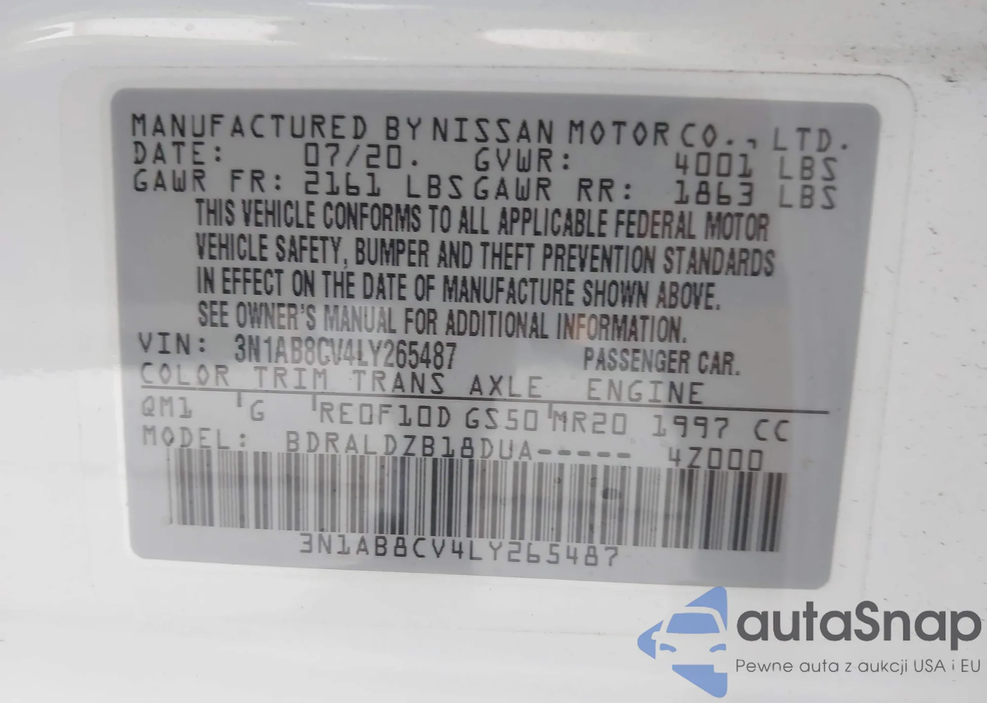 • VIN 3N1AB8CV4LY265487