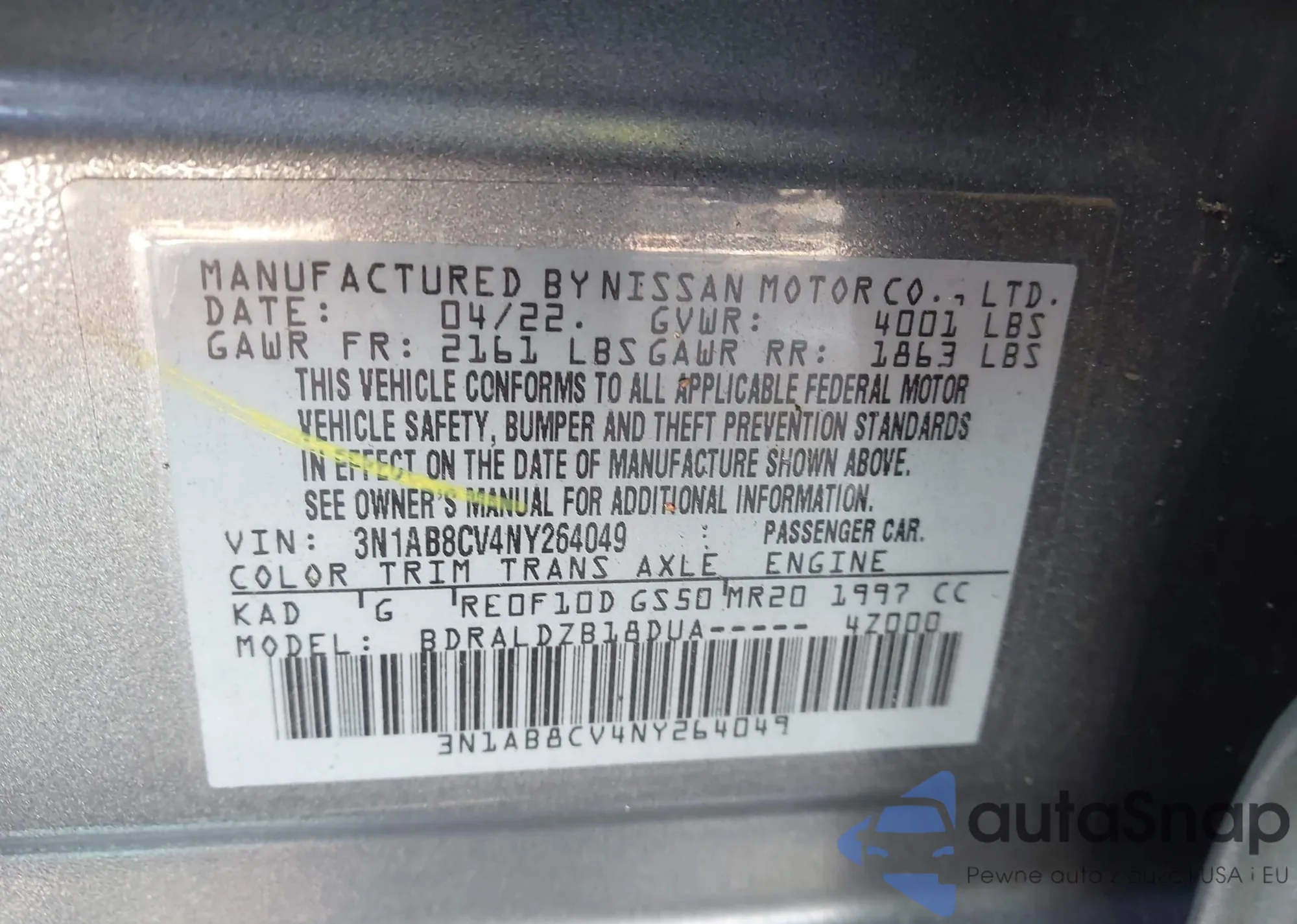 • VIN 3N1AB8CV4NY264049