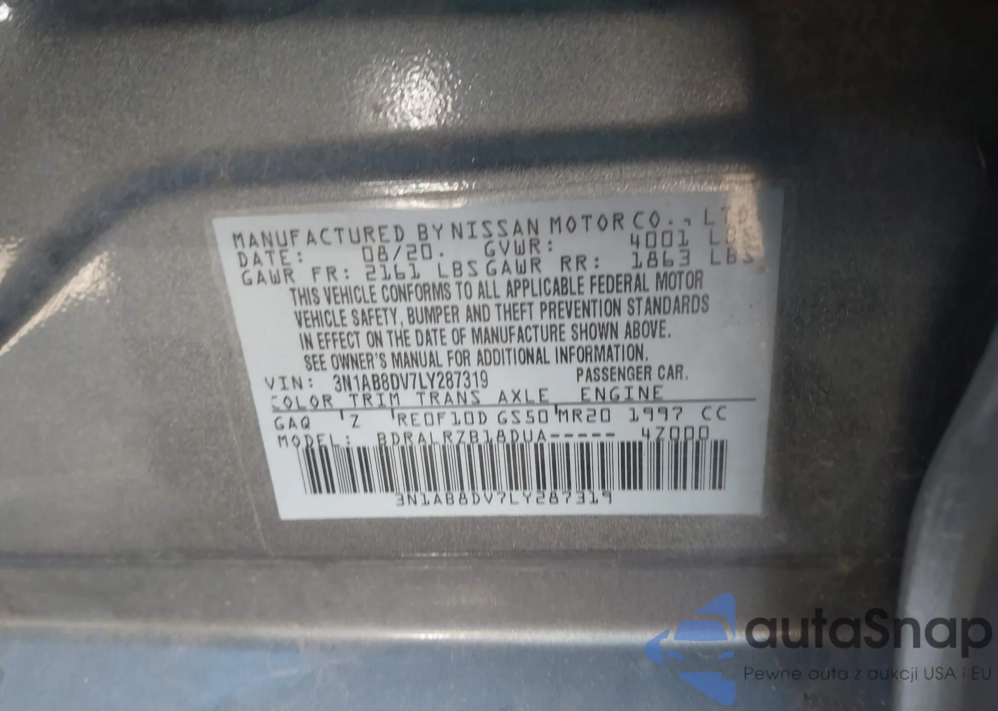 • VIN 3N1AB8DV7LY287319