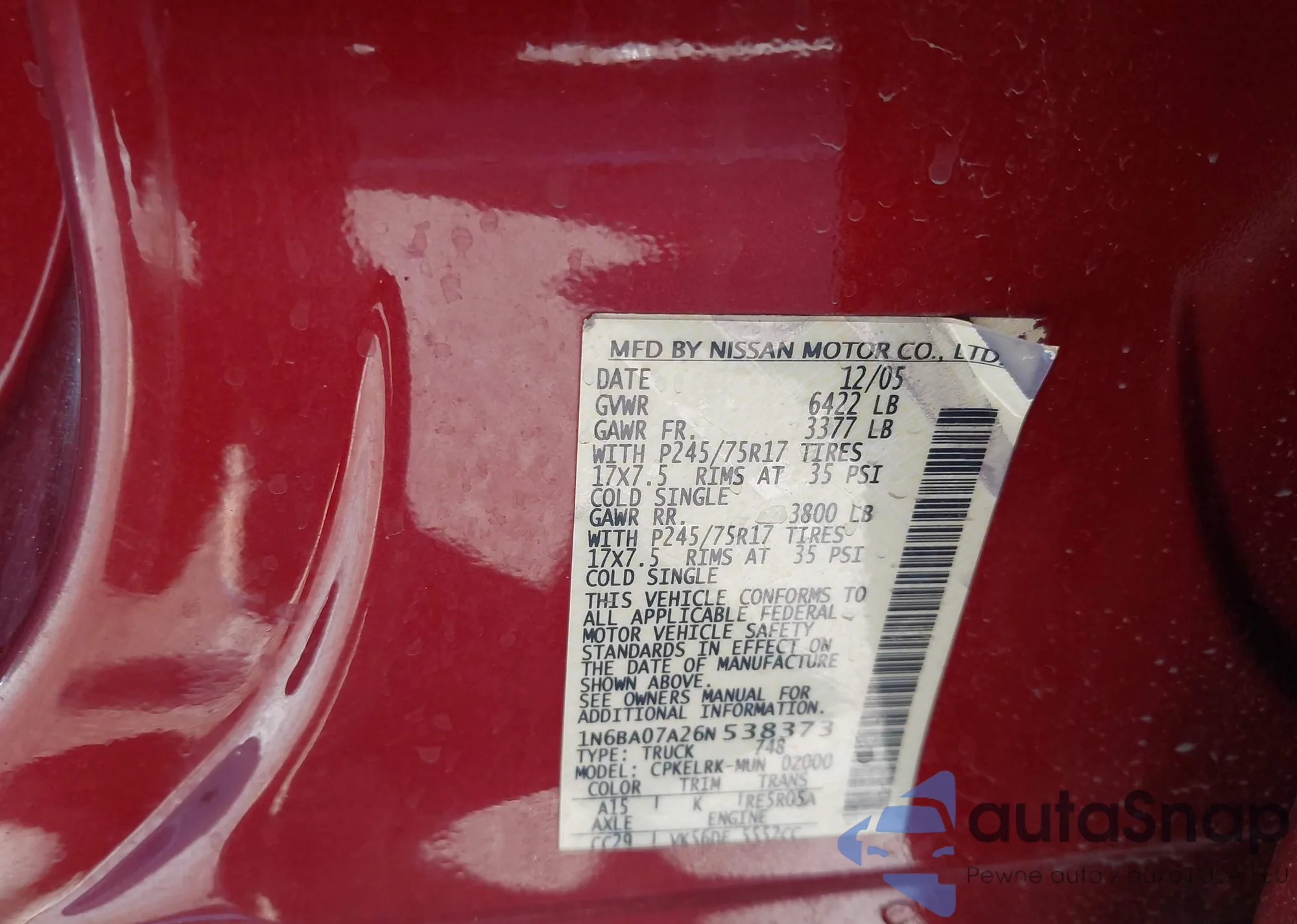 • VIN 1N6BA07A26N538373