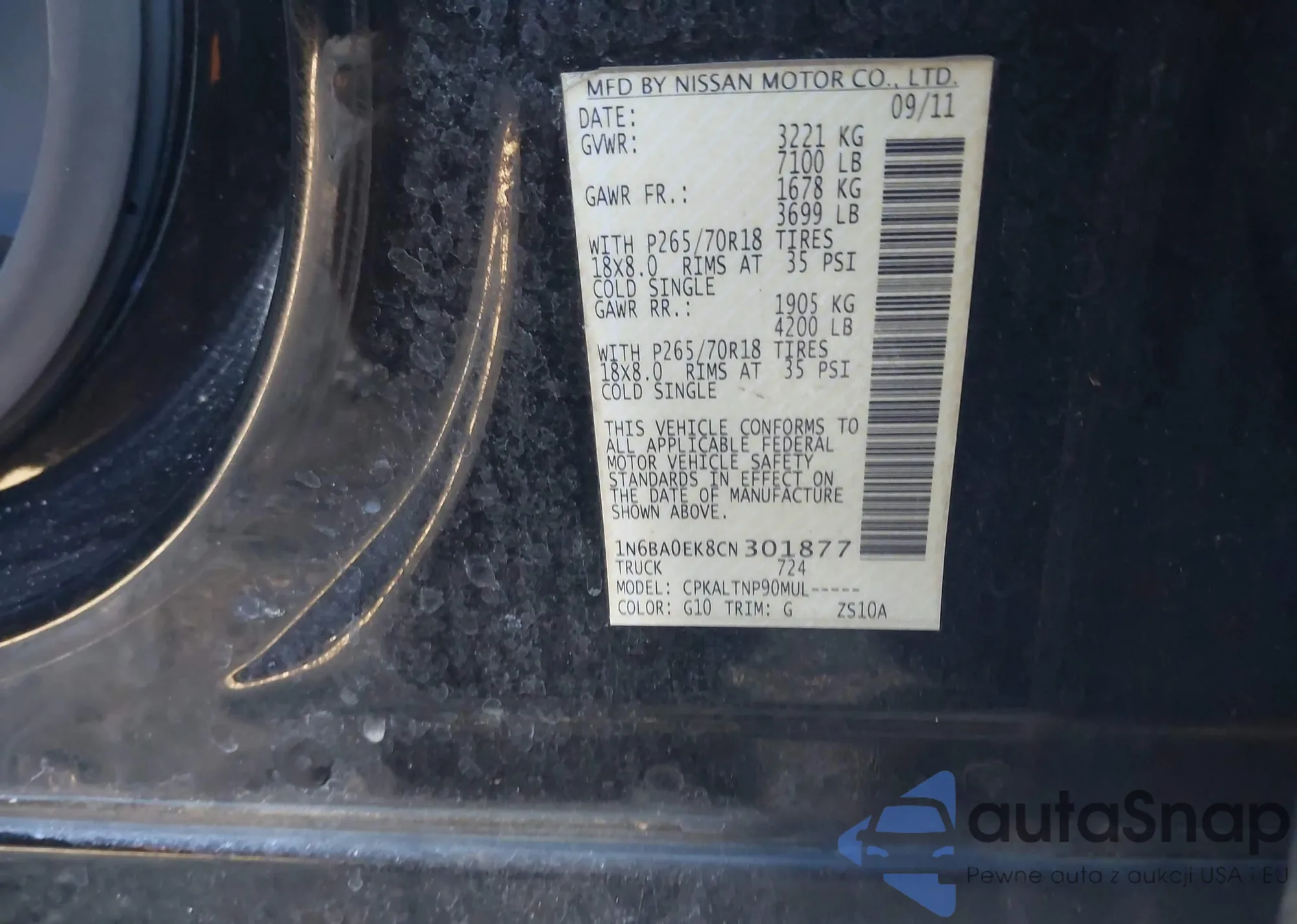 • VIN 1N6BA0EK8CN301877