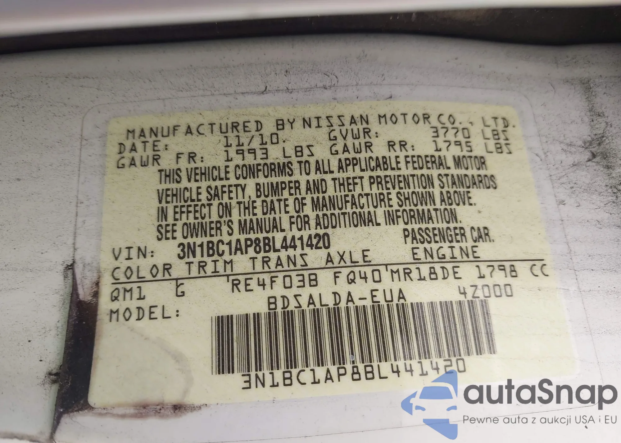 • VIN 3N1BC1AP8BL441420