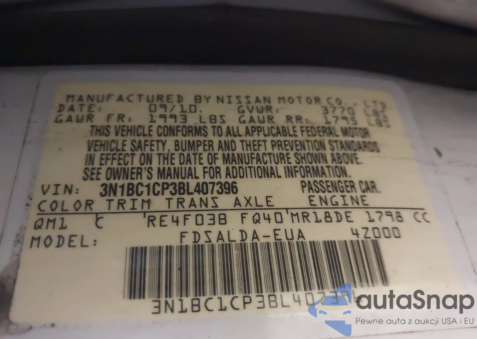 • VIN 3N1BC1CP3BL407396