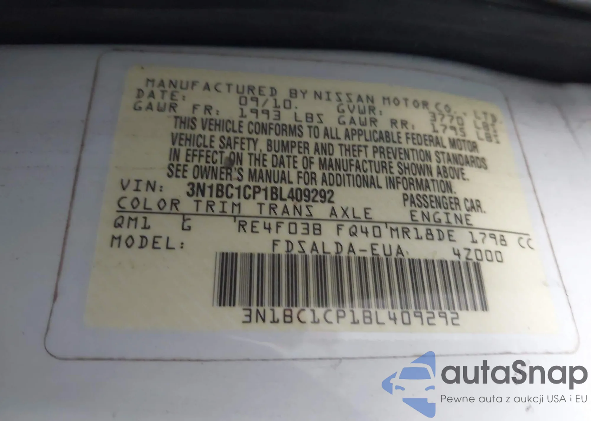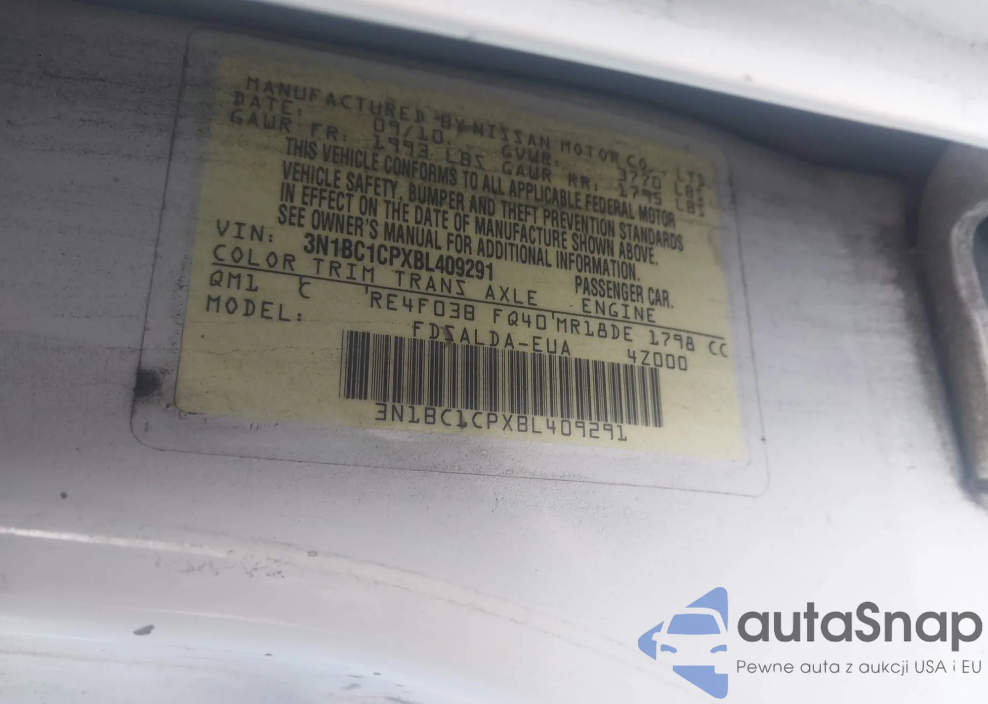 • VIN 3N1BC1CPXBL409291