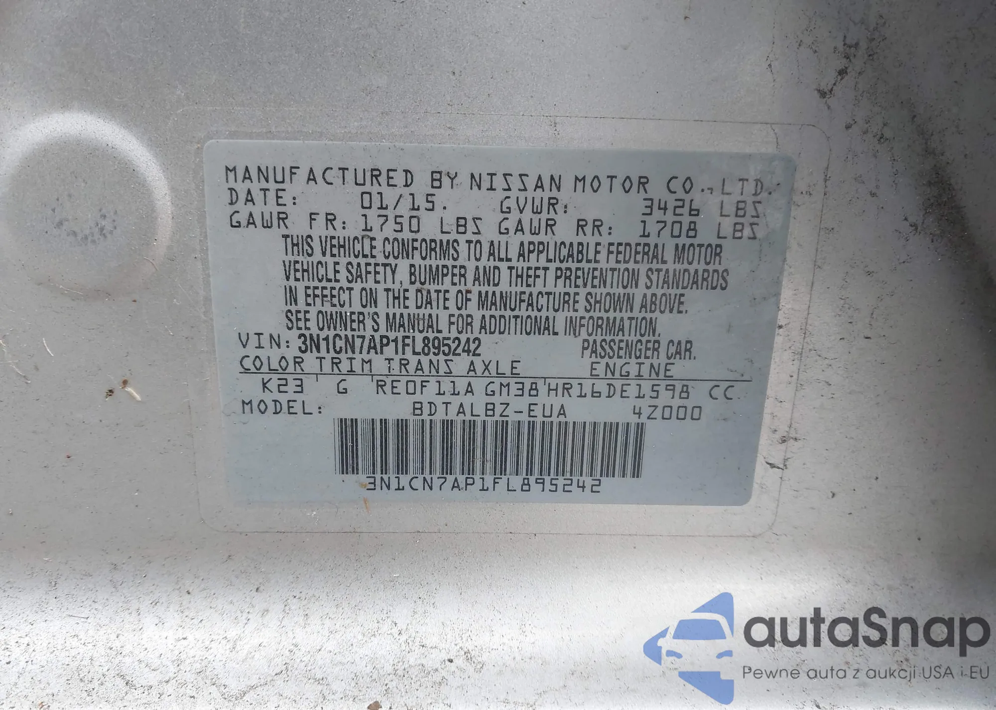 • VIN 3N1CN7AP1FL895242