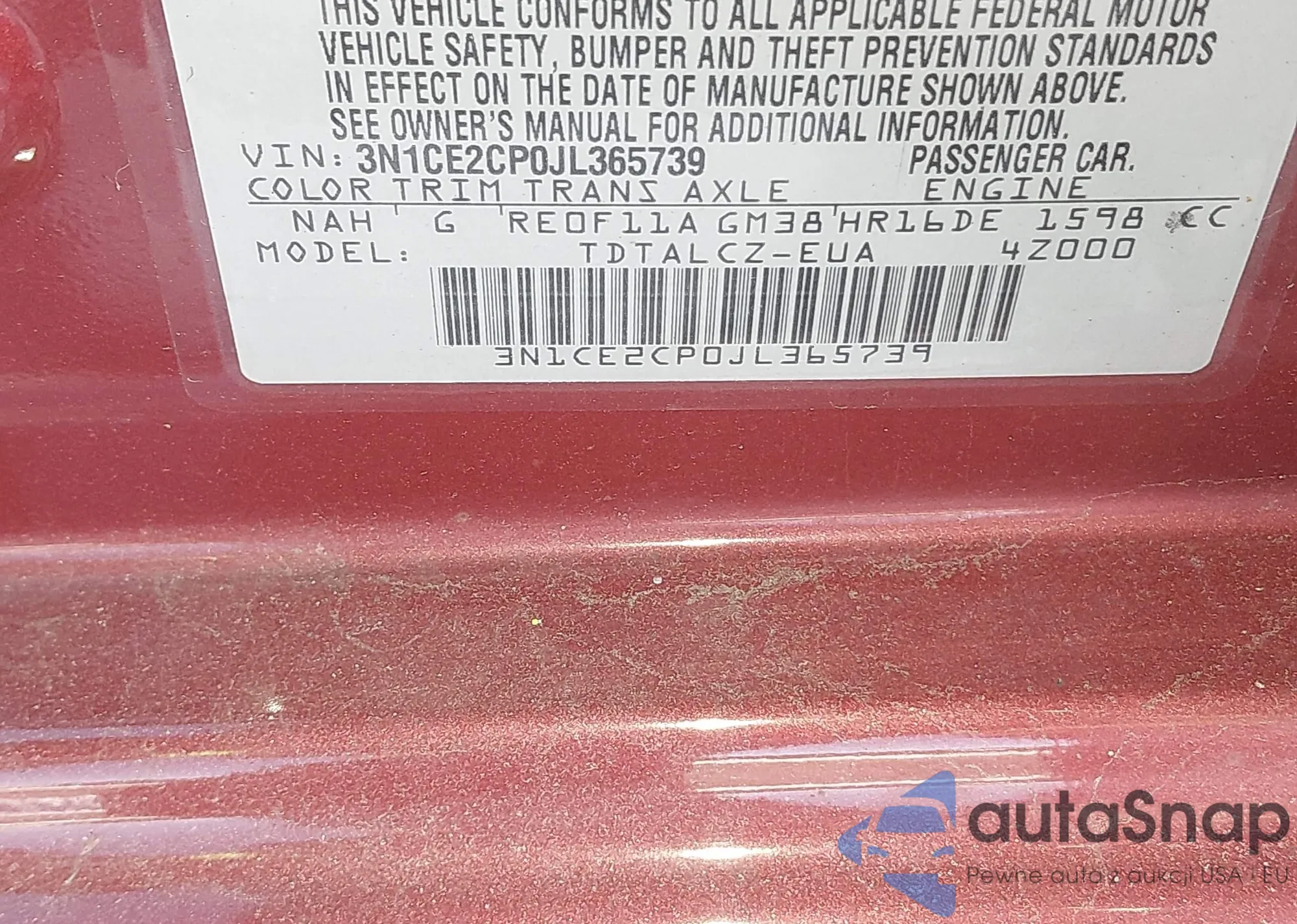 • VIN 3N1CE2CP0JL365739