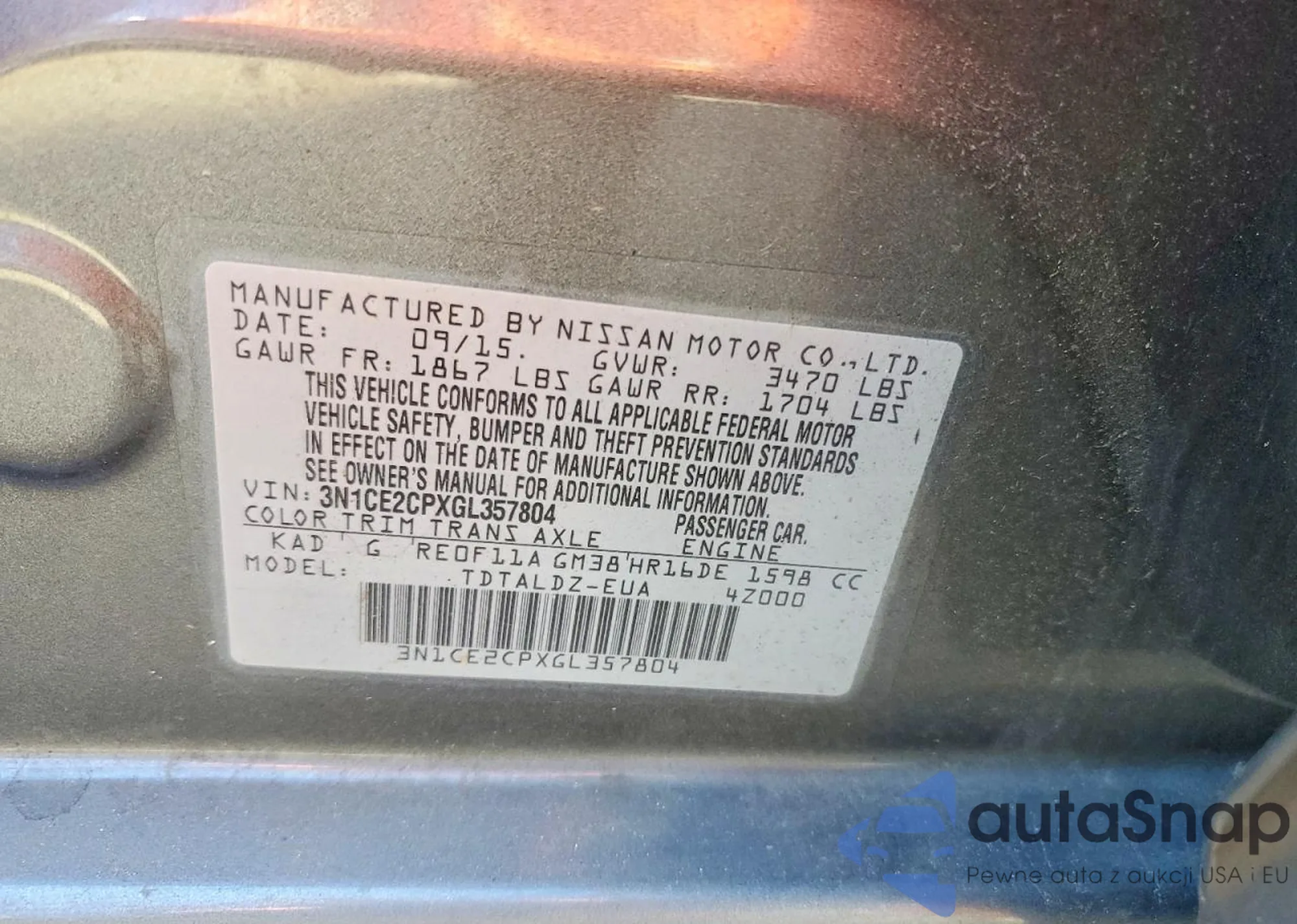 • VIN 3N1CE2CPXGL357804