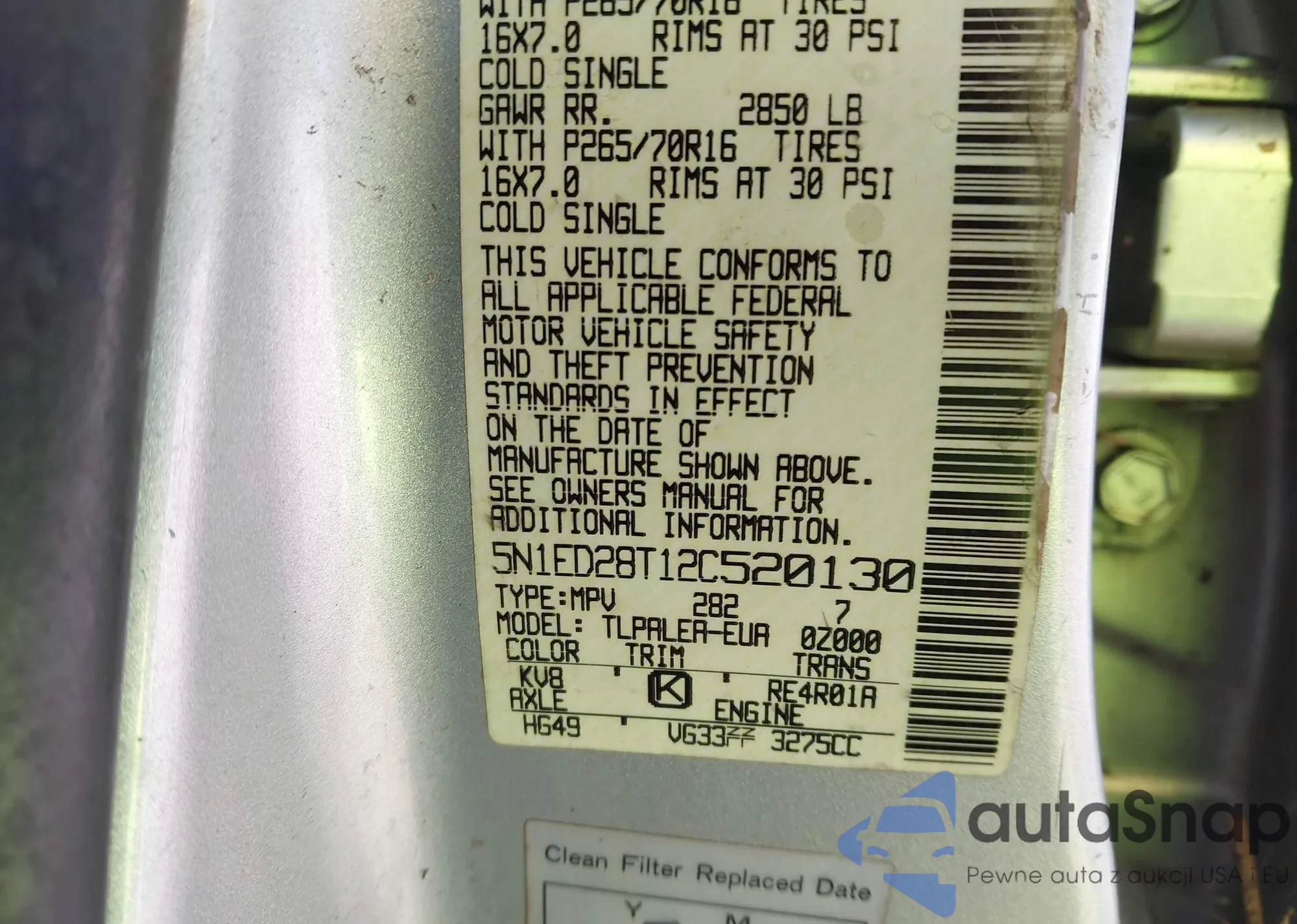 • VIN 5N1ED28T12C520130