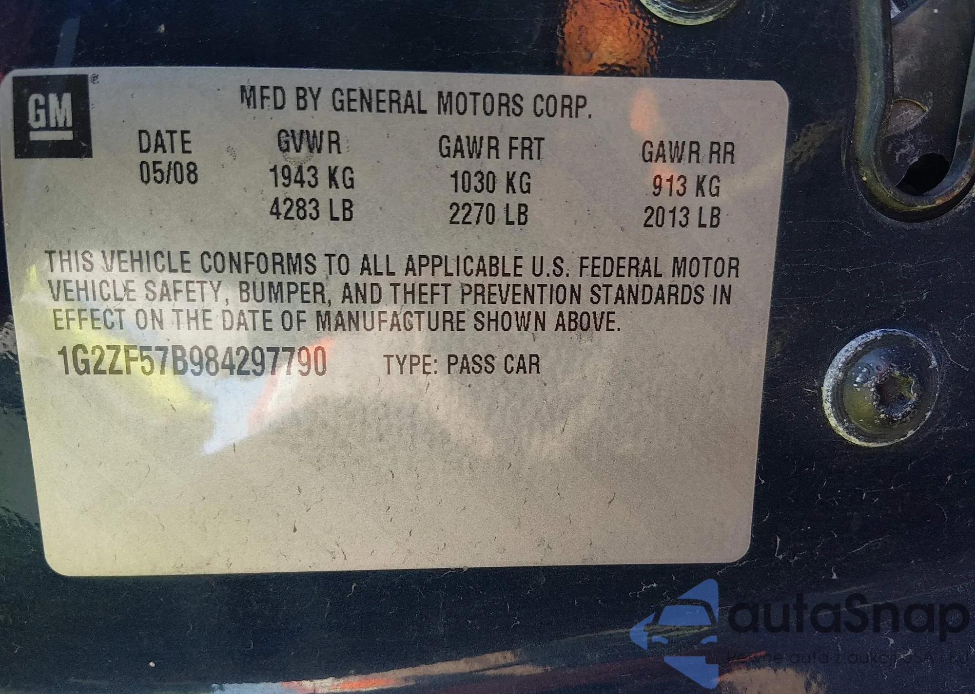 • VIN 1G2ZF57B984297790