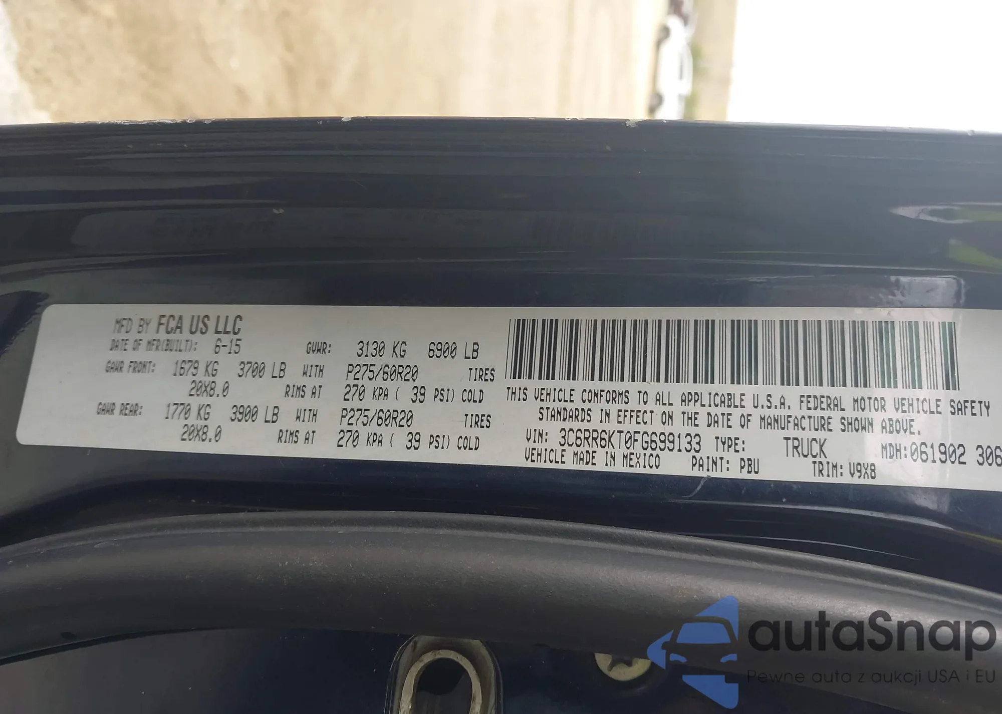 • VIN 3C6RR6KT0FG699133